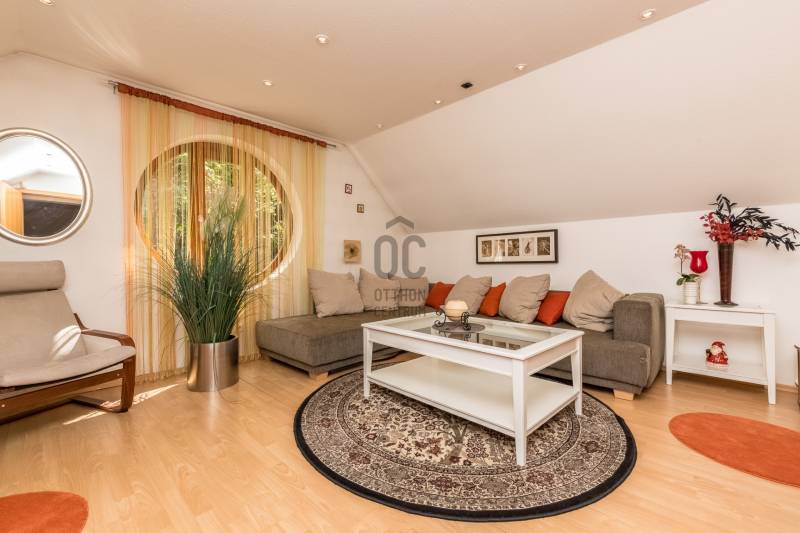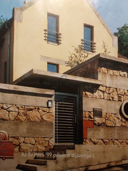 Csobánka történelmi települése a smaragd az északi agglomeráció koronáján. A pilis lábánál elterülő falusias bájú községet háborítatlan zöld öleli, sziklás és erdős hegylánctól körülvett gyönyörű völgykatlanban fekszik mindössze 15km-re Budapesttől!Tökéletes választás azok számára, akik a Fővároshoz kötve élnek, de nem kötnek abban kompromisszumot, hogy az Otthonuk a nyugalom szigete legyen!Itt, a Villa-negyedben került eladósorba egy UNIKÁLIS CSALÁDI HÁZ.Abszolút egyedi tervek, falakból megvalósított álmok születtek itt 1999-ben, melyet mi sem bizonyít jobban, hogy ekkor az épület megkapta az \"ÉV HÁZA\" díjat, valamint a Magyar Építészeti Kamara különdíjazottja lett.Domboldalba rejtett álomotthon ami tökéletes kompozíciója a romantikus Provence otthonnak és a kényelmes életterek alkotta funkciónak.A közel 1000m2-es hegyoldali telket tökéletesen kihasználva mind az építész mind a tájépítész egyedit alkotott. Az utcafronti terméskövezett támfalba rejtve 60m2-es 3állásos garázs valamint biciklitároló került. A ház 2 szintes elrendezésű, 203nettó alapterületén 2 külön, és egyben is használható lakótér valósult meg:Földszinten: elegáns előszoba/hall, mosókonyha-gépészeti helyiség, szeparált illemhely, hatalmas amerikai konyhás nappali kamrával, valamint térben szeparált dolgozószoba kaptak helyet. A nappali szinteltolással különül el, éke a frissen készült mázoskerámia cserépkályha és a hatalmas ablakokon át nyíló zavartalan zöldkerti panoráma. Erről a szintről elérhető a KÜLÖN LAKRÉSZ, -melynek külső bejárata is van, nappali+konyha+fürdőszoba elrendezésű így tökéletes választás nagyszülő elhelyezésére, fiatal felnőtt gyermek számára valamint ÜGYFÉLFOGADÁSRA, IRODAI TEVÉKENYSÉGRE, BEAUTY SZOLGÁLTATÁSOKRA, -így a vállalkozás együtt mégis szeparálva koordinálható otthonról!Emeleten: Fürdőszoba, 4 hálószoba, mind világos, kellemes méretű, az egyik walk-in gardróbbal felszerelt, 2-nek franciaerkélye van, a szülői lakrész pedig egy folyosó végén kialakított tágas hálószoba, saját fürdőszobával.Az elegáns terek jó műszaki felszereltséggel találkoznak, a házban PADLÓFŰTÉS van, KONDENZÁCIÓS KAZÁN biztosítja a hőszabályozást, a nyílászárók tömörfa-tokos thermoüveges egységek.Kiépített riasztórendszer, elektromos garázskapu, kerti tároló, víztisztító berendezés!A fenntartási költség ALACSONY, az épület hőtartása téli és nyári időszakban is tökéletes!A kert gyönyörű, buja díszcserjékkel, homlokzatra futó vadszőlővel kápráztatja el az ideérkezőt. Beállt, egészséges felnőtt növényzete nem csak dekorál, de árnyékot ad és levegőt szűr, így hatalmas érték annak, aki tudja mit ad a zöld az ember szívének!A növényzet gondozását automata öntözőrendszer segíti, a kerti szerszámoknak külön tároló áll rendelkezésre.Jöjjön el, tekintse meg, ha szereti a természetet és kívánja hogy a hétköznapjait körbeölelje a zöld, ha olyan otthont keres ahol a vállalkozása is elfér a család megzavarása nélkül, ha nagycsaládos és elege van a kompromisszumokból, - olyan otthonra vágyik ahol mindenkinek egészséges tér jut!Vigyázat! - ABSZOLÚT BELESZERETŐS, Ha megnézi nem keres majd tovább!-alaprajz feltöltése folyamatban, de mailben szívesen elküldöm!-