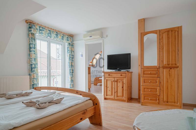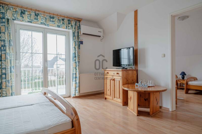 Kivételes lehetőség a Balaton egyik legkedveltebb településén! Ez a modern és energiahatékony családi ház ideális választás nagycsaládosoknak, befektetőknek vagy turisztikai hasznosításra. A kiváló lokáció, a több különálló lakrész és a prémium felszereltség garantálja az értékállóságot és a magas hozampotenciált.Lokáció – Balaton közelsége és kiváló infrastruktúra.* Mindkét strand kb. 10 perc kényelmes sétával elérhető* Nyugodt, üdülő-pihenő övezet, mégis kiváló megközelíthetőséggel* A környék ideális nyaralásra, állandó lakhatásra és kiadásra egyaránt* Közelben éttermek, kerékpárutak, bevásárlási lehetőségek* A közeli Keszthely város teljes infrastruktúrát biztosítGyenesdiás a Balaton partjának egyik legértékesebb települése, ahol a természet közelsége és a fejlett turizmus kiváló befektetési környezetet teremt.Az ingatlan főbb jellemzői.Telek és épület:* Földszint + emelet kialakítás* Teljes felújítás: 2022* Napelemes rendszer szaldós elszámolással* Központi gázfűtés + padlófűtés az alsó szinten* Minden helyiségben hűtő-fűtő klíma* Kültéri kamerarendszerFöldszint elrendezése:* Előtér* Vendég WC* Tágas nappali / étkező* Konyha* 2 hálószoba* Fürdőszoba + WC* Terasz* Mosókonyha* Elektromos kapus garázs (1 autó részére)Emelet:* 3 különálló lakrész* Lakrészenként: * 2 hálószoba * Saját fürdőszoba + WC * Saját erkélyIdeális apartmanozásra, vendégház vagy panzió kialakítására!Kültéri extrák és kert:* 6 × 10 × 1,5 m csempézett úszómedence automata vegyszeradagolással* Automata öntözőrendszer* Fedett fa kerti kiülő* Játszótér* 3 autó részére térkövezett parkoló* Külön garázsbejáró* 2 elektromos kapuBefektetési szempontból kiemelkedő lehetőség:✔ Balaton közeli elhelyezkedés – magas bérbeadási kereslet✔ Több különálló lakrész – azonnali hasznosítási lehetőség✔ Teljes felújítás – nincs további beruházási költség✔ Energiahatékony működés napelemmel✔ Kiváló ár-érték arány a lokációhoz képestIdeális választás:* Nagycsaládosoknak* Többgenerációs otthonnak* Befektetőknek (apartman, vendégház)* Balaton közeli nyaralónak* Prémium értékálló ingatlant keresőknekÖsszegzés:Ez az ingatlan ritka kombinációja a prémium elhelyezkedésnek, modern műszaki tartalomnak és kiváló befektetési potenciálnak. A Balaton közelsége, a több lakrész és a teljes felújítás garantálja az értékállóságot és a kiemelkedő hozamlehetőséget.Érdeklődjön bizalommal, és tekintse meg személyesen ezt a kivételes gyenesdiási ingatlant!