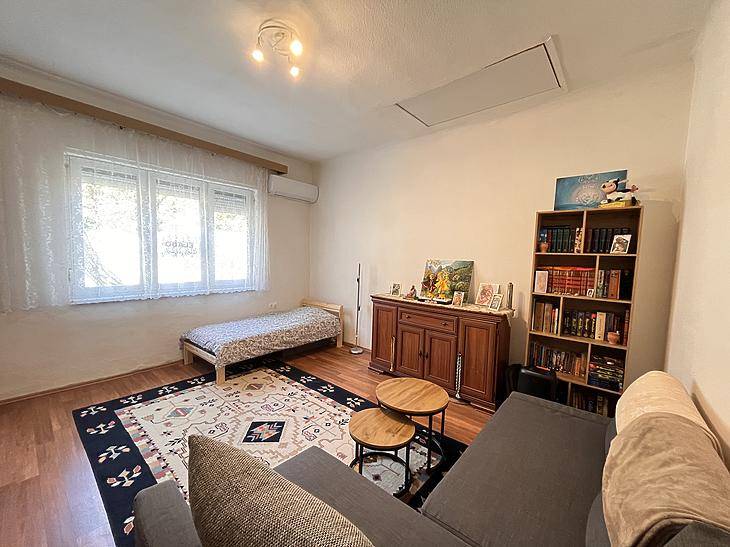 Békásmegyer- Ófaluban ELADÓ egy 46 négyzetméteres házrész 120 négyzetméteres telken!Az ingatlan az 1932-ben épült, viszont teljes felújításon esett át.A házrész jelenlegi elosztása 2 szobából, egy konyhából, egy fürdőből és előszobából áll. A nyílászárók műanyag thermo üvegesek.Az ingatlan utcára néző ablakokkal rendelkezik.Fűtésről a fa tüzelésű cserépkályha mellett klíma és a kisebb szobában padlófűtés gondoskodik. Ez átlagosan 30.000 Ft/hó.Az ingatlan bútorozott és gépesített, melyek megegyezés alapján a megvásárolhatóak.Tartozik az ingatlanhoz padlás, ahova a nappaliból lehet feljutni, valamint pince és két sufni is. Az egyik sufniba a víz is be van vezetve.Környékről:Közelben minden olyan szolgálatás megtalálható amire szüksége lehet a mindennapokban (kisebb élelmiszer boltok, piac, éttermek, gyógyszertárak). Gyerekes családoknak nagyon ideális hiszen játszóterek, Óvoda, Iskola, Egyetem van a közelben.Tömegközlekedés szempontjából is tökéletes hiszen pár perc sétára található számos buszmegálló, illetve a H5-ös hév.FINANSZÍROZÁS:Banki finanszírozással is megvásárolható, melyben irodánk ingyenes tanácsadással áll rendelkezésükre!VEVŐINK RÉSZÉRE A KÖZVETÍTÉS DÍJTALAN!A beépített bútorzat a vételár részét képezi.A hirdetésben szereplő adatok tájékoztató jellegűek.