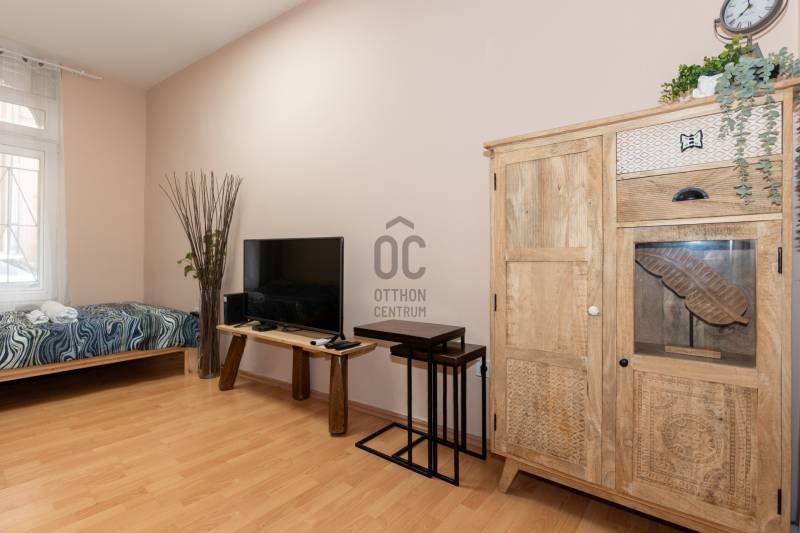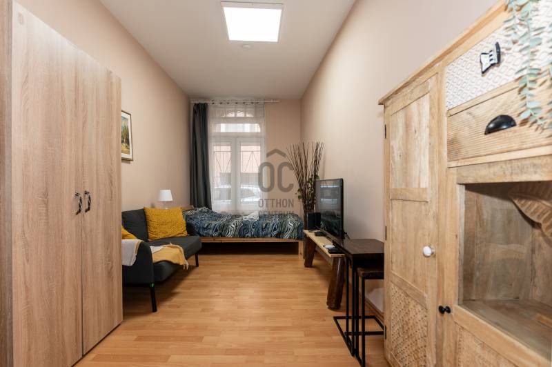MIÉRT EZ A LEGJOBB BEFEKTETÉS MOST?* TOP LOKÁCIÓ: A Rákóczi tértől és a körúttól mindössze 2 sarokra – a turisták imádják ezt a környéket.* BIZONYÍTOTT HOZAM: Jelenleg is kiválóan működő, magas kihasználtságú Airbnb lakás.* PIACI ELŐNY: A jelenlegi moratórium miatt most nyomottabb áron juthat hozzá egy olyan ingatlanhoz, amely hosszú távon aranybánya lehet.* AZONNAL KIADHATÓ: Teljes berendezéssel, gépesítve, \"kulcsrakész\" állapotban eladó.* ALACSONY REZSI: Fenntartása rendkívül gazdaságos, így maximalizálható a profit.* CSEND ÉS NYUGALOM: Bár a város szívében van, a garzon előtti belső udvarrész privát teraszként funkcionál.AZ ÜZLETI LEHETŐSÉG (SMART INVESTMENT)Ez az ingatlan azoknak a szemfüles befektetőknek szól, akik a jelenlegi piaci helyzetet (kerületi engedélyeztetési moratórium) előnyükre fordítják. Bár új rövidtávú engedélyt jelenleg nem lehet kikérni, Ön most a piaci árnál kedvezőbben juthat hozzá ehhez a felkapott lokációjú ingatlanhoz.Stratégia: Hasznosítsa középtávon (diákok, expatok részére) az átmeneti időszakban, majd a szabályozás rendeződése után élvezze a teljes Airbnb hozamot!AZ INGATLANA Bérkocsis utcában található, földszinti, 25 nm-es garzonlakás minden négyzetcentimétere a praktikumot és a kényelmet szolgálja. Bár az ablakok az utcára néznek (világos!), a bejárat a ház csendes, gondozott belső udvaráról nyílik. Ez a szeparált udvarrész a lakók számára saját teraszként funkcionál – tökéletes reggeli kávézáshoz vagy esti pihenéshez.A lakás jó állapotú. A fűtésről gázkonvektor, a hűtésről és kiegészítő fűtésről pedig klíma gondoskodik.A vételár részét képezi a teljes, újszerű bútorzat és gépesítés:* Konyha: beépített bútor, tűzhely, mosogatógép, mosógép, hűtő.* Szoba: kényelmes kétszemélyes ágy új matraccal, kanapé, étkezőpult, gardrób és dekoráció.MŰSZAKI ADATOK* Méret: 25 nm* Belmagasság: 270 cm* Állapot: Jó/Újszerű, műanyag nyílászárókkal és biztonsági ráccsal.* Mérőórák: Egyedi mérés (víz, villany, gáz).* Komfort: Klímával felszerelt.KÖRNYÉK ÉS KÖZLEKEDÉSA VIII. kerület legdinamikusabban fejlődő része, a Palotanegyed szomszédságában.* Közlekedés: A 4-6-os villamos és az M4-es metró (Rákóczi tér) mindössze 3-4 perc séta. Éjszakai járatok és buszok garmadája biztosítja, hogy a város bármely pontja éjjel-nappal elérhető legyen.* Szórakozás & Ellátás: A környék hemzseg a lehetőségektől – hangulatos kávézók, éttermek, a Rákóczi téri Vásárcsarnok, mozi és a Corvin-negyed közelsége mind növeli az ingatlan értékét a bérlők szemében.KÖLTSÉGEK (PROFIT MAXIMALIZÁLÁS)Az ingatlan fenntartása rendkívül alacsony, így a bérleti díj nagy része tisztán a zsebében marad:* Közös költség: 16.000 Ft/hó (tartalmazza a korlátlan vízfogyasztást!).* Teljes rezsi: (közös költséggel együtt) télen-nyáron átlagosan mindössze kb. 25.000 Ft/hó.ÉPÜLETEgy 1920-as években épült, 22 lakásos, 2 emeletes nagypolgári ház. A homlokzat átlagos, de a belső terek és az udvar folyamatosan karbantartott, tiszta és rendezett lakóközösséggel rendelkezik.KIKNEK AJÁNLOTT?* Befektetőknek: Akik látják a potenciált a \"buy low\" stratégiában és egy bejáratott, magas értékelésű helyet keresnek.* Első lakásvásárlóknak: Akik a belvárosban keresnek megfizethető, de minőségi otthont.* Diákoknak/Szülőknek: A kiváló egyetemi összeköttetések miatt.IRÁNYÁR: 43.300.000 Ft (kb. 111,000 EUR)FONTOS: A garzon jelenleg is aktívan üzemel és folyamatosan foglalt! Megtekintés kizárólag előre egyeztetett időpontban lehetséges, alkalmazkodva a vendégek távozásához. Ne maradjon le erről a lehetőségről, hívjon még ma!