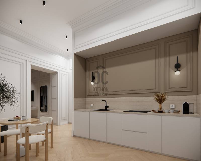 2. emelet • TOP LOKÁCIÓ • ténylegesen PRÉMIUM minőségű felújítás! Teljes bútorzat!Budapest egyik legkeresettebb belvárosi utcájában, a Klauzál utcában, szép állapotú társasház 2. emeletén eladó egy teljes körűen, kiváló műszaki tartalommal felújított lakás.Az ingatlan minden részletében minőségi és egyedi kivitelezést tükröz, ideális választás azok számára, akik kompromisszummentes belvárosi otthont vagy stabil befektetést keresnek.A látványtervek a valóságot tükrözik, minden ugyanúgy fog megvalósulni. A bútorok és kiegészítők is mind részei lesznek a végső átadásnak!Már csak a személyes tárgyai fognak hiányozni az ingatlanból. Műszaki tartalom:* Külön mérőórákkal rendelkezik, nincs almérő!* H tarifa előkészítés már megtörtént ! * Teljesen új aljzatbeton* Új PVC csöves szennyvízrendszer* Teljesen új elektromos hálózat, ami csőben van elvezetve így többé már nem kell a falakat vésni* Felújított vízvezeték rendszer* 10 cm-es téglafal válaszfalak, mindkét oldalról DUPLA hangszigetelt gipszkarton borítással, hogy maximálisan csendesen élvezhesse az itt tartózkodást * Utcai oldalon felújított fa nyílászárók, cserélt üvegezéssel* Nagy lapos Mirage Travertino burkolat* Egger melegburkolat halszálka mintával* Kave Home spanyol berendezési tárgyak * Legrand kapcsolók* Fűtőpanel előkészítés , így igény szerint fűtőpanel betehető, bár a hűtő-fűtő klíma tökéletesen elegendő. A rezsi minimálás érdekében, ahogyan korábban említettem a H-tarifa előkészítés is elkészült, ezt is tartalmazza az ár Fűtés-hűtés* Ariston hűtő-fűtő split klíma* H tarifa előkészítésKonyha* Egyedileg gyártott, magas minőségű MDF asztalos bútor* Gorenje gépesítés (főzőlap, hűtő, elszívó, mosógép, mosogatógép)Fürdőszoba* Prémium szaniterek* Modern, igényes burkolatokTovábbi információ* Gangról nyíló bejárat, nincs közös folyosóhasználat* Külön kaputelefon* Lift nincs* Átadás legkésőbbi időpontja : 2026. április 30.* Fizetési ütemezés: 25% adás-vételi szerződéskor a fennmaradó 75% átadáskor*Osztatlan közös tulajdon, mely már rendelkezik ellenjegyzett ügyvédi használati megosztással, így nem csak fizikailag lettek szétválasztva a lakások hanem jogilag is! Jelenlegi állapotban már megtekintő, a felújítás folyamatosan dokumentálásra került, így könnyen lekövethető a magas szintű felújítás.Hosszú idők óta ezzel foglalkozó cég az eladó, teljesen leinformálható, megbízható. A Klauzál utca elhelyezkedése miatt rendkívül keresett, kiváló infrastruktúrával és belvárosi életérzéssel.Lokációja és minőségi kivitelezése miatt könnyen kiadható, így befektetésre ideális, ugyanakkor saját részre is tökéletes, azonnal költözhető, prémium otthon.