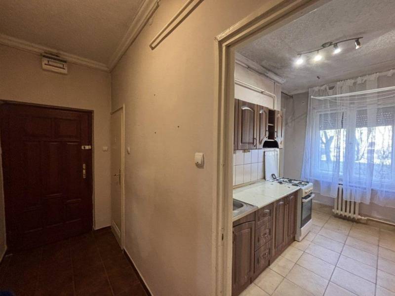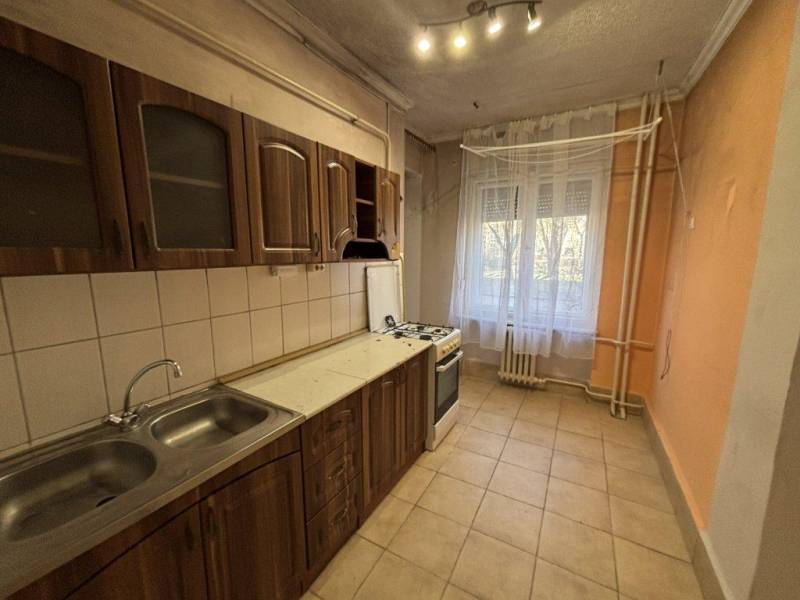 KÉNYELMES ELOSZTÁSÚ FÖLDSZINTI LAKÁS ELADÓ!Tiszaújváros, Munkácsy Mihály úton lévő társasház földszintjén eladó 35 nm-es, 1 szobás, nagy konyhás, kényelmes elosztású, felújítandó téglalakás, mely tégla falainak köszönhetően akár át is alakítható egy modern elrendezésű otthonná. A felújításnak köszönhetően saját elképzeléseit valósíthatja meg az ingatlanban.A lakás paraméterei:- szoba, konyha, kamra, fürdő + WC, közlekedő helyiségekből áll- kényelmesen megközelíthető, mivel néhány lépcsőfok csak a bejárati ajtó- eredeti fa nyílászárói redőnnyel felszereltek- helyiségek falazata festett- szoba aljzata lamináltpadlóval egyéb helyiségek járólappal burkoltak- konyha kényelmes méretű főzéshez és étkezéshez egyaránt- konyha egybe nyitott a kamrával- napfényes világos lakás, nyugati tájolású, ablakai zöld övezetre néznek- fürdőben zuhanykabin került beépítésre- saját használatú pince tartozik hozzá A társasház rendezett, lakóközössége jó. Csendes helyen, parkosított övezetben fekszik, néhány perc sétával elérhető bolt, óvoda, iskola, gyógyszertár stb. A parkolás kényelmesen megoldható a társasház előtt.Kiváló választás ez a lakás akár saját részre akár befektetési szándékkal vásárolja meg. Kortól függetlenül ajánlom egyedülállónak vagy párnak egyaránt. Lépcsőzésmentes, kényelmes otthon várja új tulajdonosát!Kérem hívjon és nézzük meg együtt ezt a praktikus elrendezésű lakást! Vevőink részére szolgáltatásunk ingyenes! Díjmentes hitel ügyintézéssel állunk Ügyfeleink rendelkezésére: lakáskassza, fix forint alapú kölcsön és egyéb ajánlatok.MIK azonosító: 4001387