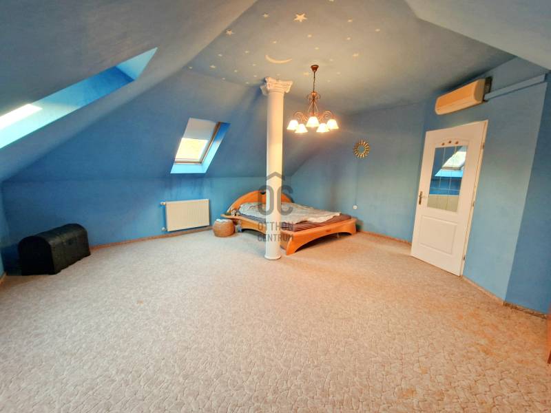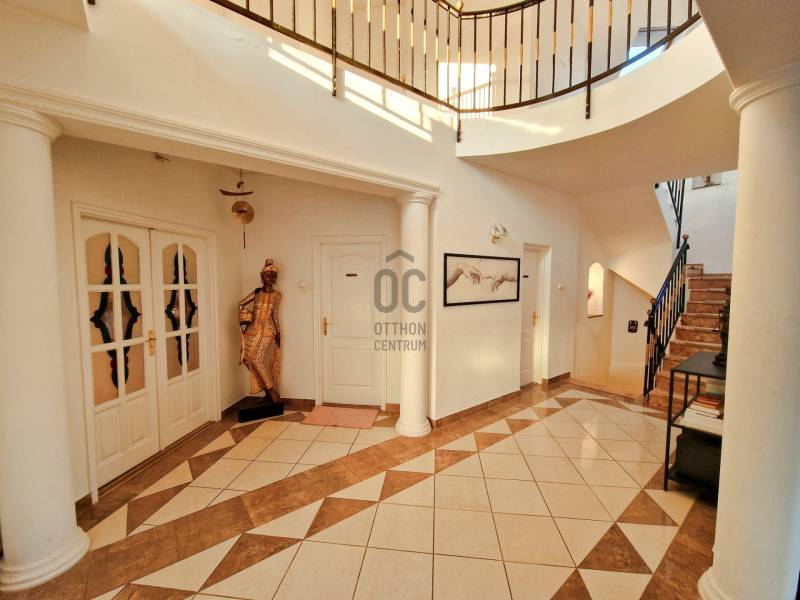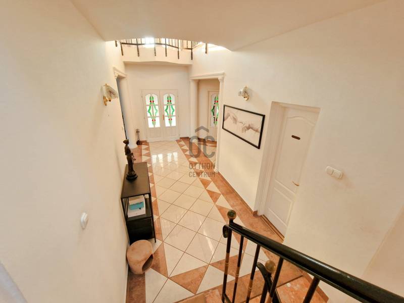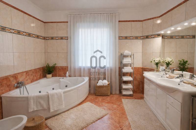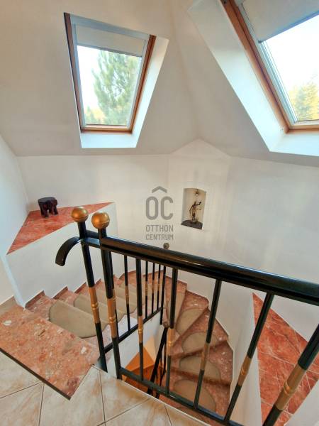 Budakeszi egyik legkedveltebb részén, Makkosmárián, ahol a madárcsicsergés és a nyugalom a mindennapok része, eladó egy impozáns, háromszintes családi ház egy 800 m²-es, zöldövezeti telken.Ez az otthon nem csupán egy ház – élettér, nyugalom és elegancia egy helyen. A bruttó 344 m²-es, nettó 253 m² hasznos alapterületű ingatlan tágas tereivel, jól átgondolt elosztásával és időtálló műszaki megoldásaival tökéletes választás azok számára, akik minőségi életteret keresnek a természet közelségében.A 2000-ben épült ház masszív tégla szerkezetű, betongerendás födémmel és Bramac cserépfedéssel, amely a stabilitás és az időtállóság garanciája. Az ingatlan az évek során folyamatos karbantartáson esett át, így új tulajdonosa egy gondosan megőrzött, harmonikus otthont vehet birtokba.A pinceszint – wellness és praktikum:Itt található a kétállásos garázs, amely kényelmes parkolást biztosít, valamint egy privát szauna, ahol a nap végén valódi feltöltődés várja a tulajdonost.Ezen a szinten kapott helyet egy nagyméretű, sokoldalúan használható tér is, amely tökéletes lehet:-saját fitneszteremnek,-hobbihelyiségnek,-raktárnak, vagy barkács helyiségnekA földszint – reprezentatív élettér:A ház központi tere a nagyvonalú nappali, amely az amerikai konyhás étkezővel együtt egy igazán tágas és elegáns életteret alkot.A hatalmas üvegfelületeken keresztül a természet szinte beköltözik a nappaliba, miközben a tér közvetlen kapcsolatban áll a nagyméretű terasszal, amely ideális helyszíne lehet nyári vacsoráknak, baráti összejöveteleknek vagy egy csendes reggeli kávénak.A földszinten továbbá helyet kapott:-egy napfényes dolgozószoba, amely ideális home office-hoz-fürdőszoba-külön mellékhelyiség-praktikus háztartási helyiségA tetőtér – a privát lakótér:A felső szint a nyugalom és az intimitás tere.Itt két nagyméretű hálószoba található, gardróbbal, valamint egy fürdőszoba és külön mellékhelyiség biztosítja a kényelmet.Az emeleti erkélyről lélegzetelállító panoráma tárul elénk a környező zöld tájra – ugyanaz a zavartalan látvány, amely a földszinti teraszról is élvezhető.Műszaki felszereltség:Az ingatlan a komfort és biztonság jegyében számos modern megoldással rendelkezik:-gázkazános fűtés-padlófűtés és radiátoros hőleadás-műanyag nyílászárók hőszigetelő üvegezéssel-elektromos redőnyök-klímaberendezés-riasztórendszer-automata öntözőrendszer a kertben-elektromos kapuA kert – zöld oázis a mindennapokhoz:A gondozott, füvesített kert, fákkal és zöld növényzettel, valódi nyugalmi szigetet teremt. Az automata öntözőrendszer gondoskodik arról, hogy a kert mindig üde és rendezett maradjon.A teljes telek körbekerített, így ideális választás lehet családok számára is, akik biztonságos, természetközeli környezetben szeretnének élni.Az életérzés:Makkosmária az egyik legkülönlegesebb része Budakeszinek:erdő, tiszta levegő, csend és panoráma – mindez néhány percnyi autóútra Budapesttől.Ez az ingatlan ideális választás azok számára, akik nem csupán házat, hanem életminőséget keresnek.További információért, valamint megtekintésért keressen bizalommal!
