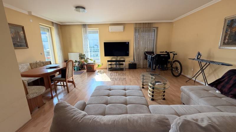 Eladó a 14. kerületben, Alsórákos kedvelt részén, egy nettó 110 m²-es, amerikai konyhás nappali + 2 hálószobás, legfelső szinti (5. emeleti), 4 erkéllyel rendelkező, 2011-ben épült tégla lakás.LAKÁS- Ha egy olyan otthont keres, ahová csak költözni kell, nem felújítani, akkor megtalálta- A lakás kifejezetten világos, hatalmas ablakainak és kedvező tájolásának köszönhetően, egyszerre modern és otthonos hangulatú- A nappali, étkező és konyha egy légtérben található, ami tágas és jól élhető közösségi teret ad- A nappaliból, a konyhából és mindkét hálószobából erkély nyílik, így a lakás összesen 4 erkéllyel rendelkezik - legfelső emeletiként penthouse jellegű lakás- A legnagyobb terasz a nappaliból érhető el, ideális reggeli kávéhoz vagy esti borozáshoz- A lakásban fürdőszoba sarokkáddal és WC-vel, valamint külön vendég WC is található- A vételár részét képezi a gépesített, egyedileg gyártatott konyhabútor, valamint a beépített bútorok- Házközponti fűtés egyedi mérőórával, és mindhárom szobában hűtő-fűtő klíma gondoskodik a komfortérzetről- Teremgarázs beálló vásárolható a lakáshoz- Az ingatlan per- és tehermentesTÁRSASHÁZ- A 2011-ben épült társasház műszakilag és esztétikailag is kiváló állapotú, a lépcsőház rendezett, a lakóközösség kulturált- A ház kamerarendszerrel és 24 órás biztonsági szolgálattal működik- A társasházhoz zárt, parkosított belső kert tartozik, amely kifejezetten csendesKÖRNYÉK, KÖZLEKEDÉS- A környék infrastruktúrája kiváló: bevásárlási lehetőségek, óvoda, iskola, gyógyszertár néhány perc alatt elérhetők.- Tömegközlekedés szempontjából is ideális választás: a 7, 133, 233, 277 és 979-es busz, valamint a 77-es troli pár perc sétával elérhető.- A közelben kerékpárutak, parkok és a Rákos-patak is megtalálható, autóval pedig 15 percen belül elérhető az M0, az Aréna Pláza, a Bosnyák tér, az Árkád vagy a Pólus Center.Amennyiben szeretné megtekinteni ezt a különleges adottságokkal rendelkező lakást, hívjon bizalommal – akár hétvégén is!