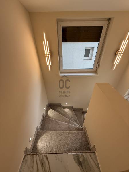 Eladó Debrecen belvárosában egy igényesen, teljes körűen felújított, belső kétszintes, nettó 110 m²-es, 4 háló+nappalis lakás!Az ingatlan kiváló elosztásának és barátságos, otthonos hangulatának köszönhetően tökéletes választás családok, párok, illetve mindazok számára, akik tágas életteret keresnek nyugodt környezetben, mégis a belváros közvetlen közelében. Az udvarban két lakás található, a hirdetés tárgyát az utcafronti ingatlan képezi.Alsó szint (félszuterén):• tágas amerikai konyhás nappali• külön nyíló hálószoba• külön illemhelyiségEmelet:• 3 kényelmes méretű hálószoba• modern fürdőszobaAz ingatlan teljes körű korszerűsítésen esett át, melynek során:• megújult az elektromos hálózat• korszerű, energiatakarékos gázkazánnal felszerelt új fűtésrendszer került kialakításra• megtörtént a nyílászárók cseréje• új tetőszerkezet készült• külső és homlokzati szigetelést kapott az épület• új, modern konyhabútor és szaniterek kerültek beépítésre• minden helyiségben minőségi burkolatok találhatók, emeleten padlószőnyeg Az ingatlan Debrecen belvárosának egyik csendes utcájában helyezkedik el, kiváló infrastruktúrával.Sétatávolságon belül elérhetők:• bevásárlóközpontok és élelmiszerüzletek• éttermek, kávézók, szórakozási lehetőségek• parkok és zöldterületek• sportolási lehetőségekGyermekes családok számára külön előny, hogy a közelben megtalálhatók:• óvodák, iskolák• játszóterek• gyermekorvosi rendelő, védőnői szolgálat• gyógyszertárak és egyéb egészségügyi intézményekEz a csendes, nyugodt lakás ideális választás azok számára, akik exkluzív környezetben szeretnének élni, mégis fontos számukra a belváros közelsége és a teljes körű infrastruktúra.Az ingatlan azonnal birtokba vehető. Parkolás a ház előtt lehetséges.Hívjon bizalommal a részletekért és a személyes megtekintés egyeztetéséhez!