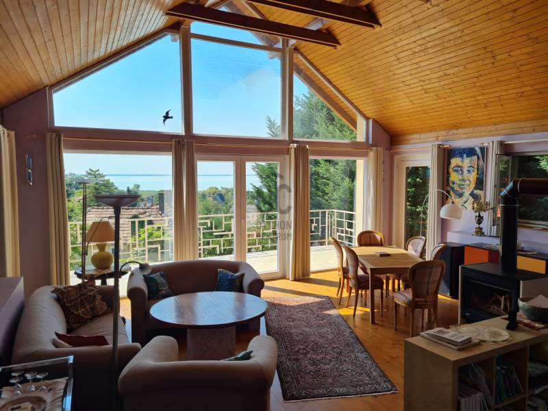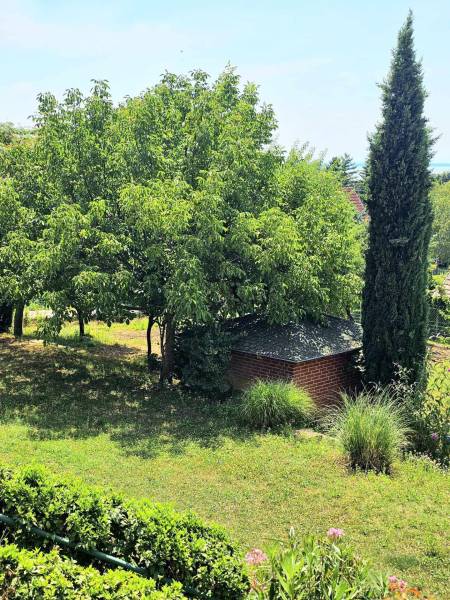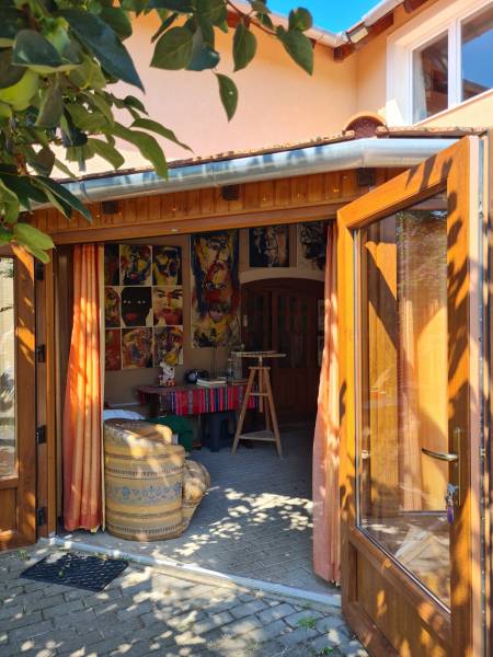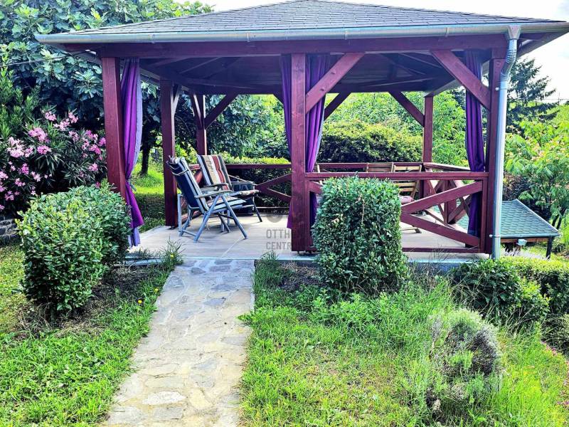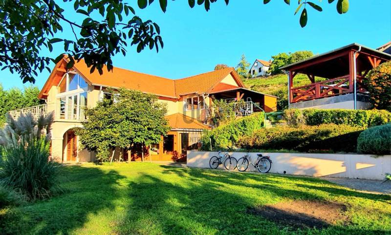 Badacsonyban vált eladóvá ez a különleges atmoszférával rendelkező épület, mely egyedi kialakításával egyből kitűnik az őt körülölelő ingatlanok közül. A területről és a ház egészéből meseszép a panoráma a Balaton vizére, de ha ez nem lenne elég, a Badacsony is ott magasodik az épület mögött.A belterületi, 1519 négyzetméteres telken a jelenlegi tulajdonos tervei és álmai alapján készült el 2005-ben a hétvégi házként bejegyzett ingatlan – mely családi otthonnak is kitűnő választás lehet -. Az épület alapjául egy már meglévő bazaltkő pince szolgált, ez került átépítésre és bővítésre korszerű anyagok felhasználásával.A ház két szinten összesen 166 négyzetméternyi hasznos alapterülettel rendelkezik.A földszinten kialakított helyiségeket az előtérből közelíthetjük meg. Itt található egy 27 négyzetméteres, parasztfödémes, meghitt hálószoba, mely közvetlen kertkapcsolattal rendelkezik és akár két különálló hálóvá osztható. Mellette kapott helyet a lépcsőház, egy fürdőszoba, tároló, pince és egy műterem.Az emeleten lévő helyiségek közül a teljes üvegfelülettel ellátott nappali/műterem és a hozzá tartozó terasz olyan egyedi és megismételhetetlen hangulatot áraszt, hogy itt egyből az az érzése az embernek, hazaért...Ezt a nappali részt egészíti ki még egy közlekedő, hálószoba, fürdőszoba, konyha és étkező, valamint egy loggia is.Az épület mindkét szintjén beépítésre került egy-egy fatüzelésű kályha, így hűvösebb időszakban ezek szolgáltatják a meleget.A kert teljesen körbekerített, több autó egyidejű parkolása is megoldható telken belül.Az udvar teraszos kialakítású, akár egy medence, gyermek játszó vagy nyári konyha kiépítésére is bőven van még hely.Az épület melletti részen egy fedett, hangulatos kerti kiülő is helyet kapott, a kert alsó részén pedig egy téglából épült tárolót is építettek.A ház egész évben aszfaltos úton könnyen megközelíthető, a Balaton partjától gyalogosan 15 percre, a központtól 2 perces autóútra van.Ajánlom az ingatlant mindazok figyelmébe, akik a “béke szigetét” keresik távol a világ zajától. Az épület állandó lakhatásra és nyaralónak is egyaránt tökéletes választás lehet!Amennyiben kérdése merülne fel az épülettel kapcsolatban, vagy szeretné azt megtekinteni, kérem keressen megadott elérhetőségeim egyikén!Az adatok kizárólag a megbízóink által rendelkezésünkre bocsátott információkon alapulnak.Fentiekre tekintettel, az adatok teljességéért, helyességéért és aktualitásáért nem vállalunk felelősséget.Az árváltozás, adatmódosítás és közbeni értékesítés jogát fenntartjuk, mindezekért jogi felelősséget nem áll módunkban vállalni.