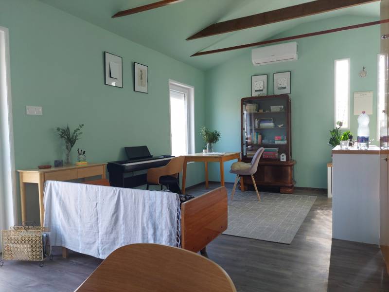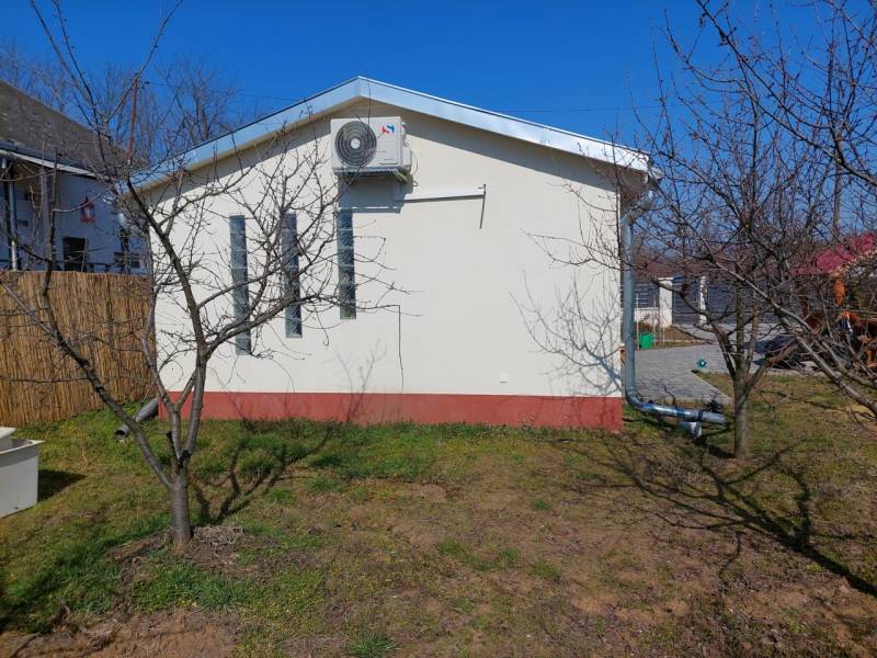 Eladó egy kis cuki új építésű szépen rendezett mini garzon méretű kertes ház Újfehértó Éva utcán.Ár: 24.990.000 Ft.Nézze meg videónkat is: http://youtu.be/I14me4HmOYkAz ingatlan alap méretei:- a telek mérete: 485nm,- a ház alapterülete: 36nm.- a tároló alapterületei: 2nmAz épület hasznos alapterülete 28nm melyben található:- nappali-konyha-ebédlő,- fürdőszoba.Ez a kis cuki ingatlan azok számára lehet ideális választás, akiknek megfelel a mini garzon méret és inkább új házba költöznének, mert nem akarnak bajlódni felújításokkal, de a jövőre nézve meg van a háznak a bővítési lehetősége is.A kertes ház 2024-ben épült beton alapon könnyűszerkezetes technológiát alkalmazva, melynek köszönhetően az épület bővítése rendkívül gyorsan és költséghatékonyan megoldható. A tetőszerkezete nyeregtető, zsindelyfedéssel ellátva. A fűtés a nappaliban hűtő-fűtő klímával van megoldva, a fürdőszobában pedig padlófűtést építettek be. Az épületben villany (1×32A), víz, és csatorna be van kötve, gázcsonk pedig a telken belül található. A ház rendkívül jó A+ energetikai kategóriába esik, így igen alacsony a rezsi költsége. Az épület jó minőségű ablakain és a bejárati ajtón távirányítással vezérelt elektromos redőnyök vannak. A konyhai részen a 3 hosszanti csíkban elhelyezett üvegtéglák jól bevilágított teret eredményeznek. Mivel az ingatlan gyakorlatilag új, és csak alkalomszerűen volt használva, azonnal beköltözhető, felújítást semmilyen formában sem igényel. A kerítés nagyon szépen kivitelezett, gépkocsival a kapun keresztül lehet beállni. Az első udvar nagy része térkövezett, autó beállásra alkalmas, valamint a bejárattal szemben van elhelyezve a szintén új rönkfa oszlopokból készült kerti kiülő pad.Az előkert részén helyezkedik el egy új kerti szerszámtároló, illetve itt lehet létrehozni egy kis konyhakertet is. A szépen gondozott hátsó kertben fiatal gyümölcsfák találhatók és ezen a területen, szükség esetén a ház további bővítése is lehetséges. A környék kifejezetten csendes, nyugodt kertvárosias. Bár az ingatlan előtt jelenleg még murvával borított út található, de a két szomszédos utca felől aszfaltozott úton közelíthető meg.FONTOS!Az ingatlan per és tehermentes, azonnal beköltözhető. Mivel az ingatlan melléképületként szerepel a nyilvántartásban, így normál jelzáloghitelre alkalmas!FIGYELEM!Az ingatlan Újfehértó központjától 10 percre található, így könnyen elérhetők az iskolák, óvodák, bölcsőde, orvosi rendelők, fogászat, gyógyszertár, bank, templom, az önkormányzati hivatal, a Városi uszoda és számtalan üzlethelyiség is. Továbbá a közelben található a SPAR, a PENNY és a LIDL bevásárló központok is.Újfehértó város jelenleg az ötödik legnépesebb város Szabolcs-Szatmár-Bereg vármegyében. Nyíregyházától körülbelül 16 kilométerrel délre, Debrecentől 35 kilométerrel északra, a Nyírség Hajdúság felé eső peremén fekszik. Két legfontosabb közúti megközelítési útvonala a 4-es főút, illetve az M3-as autópálya, ezeknek köszönhetően az ország távolabbi részei felől is könnyen megközelíthető.A hazai vasútvonalak közül a várost a Budapest–Debrecen–Nyíregyháza–Záhony-vasútvonal érinti, melynek egy megállási pontja van itt. A környező kisebb települések közül Hajdúdoroggal, Hajdúböszörménnyel, Nagykállóval, Nyíregyháza Butyka nevű különálló városrészével, Érpatakkal és Kálmánházával mellékutak kötik össze.Ha felkeltette érdeklődését, hívja irodánkat bizalommal!Ha hitelre van szüksége éljen ingyenes, személyre szabott hitel ügyintézési szolgáltatásunkkal is.