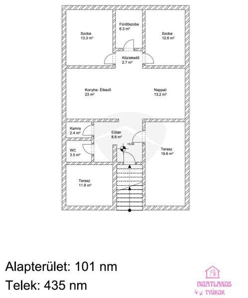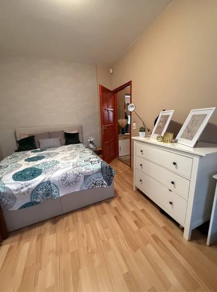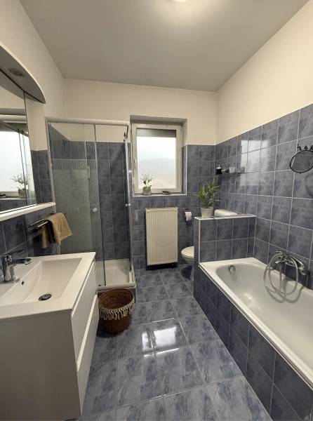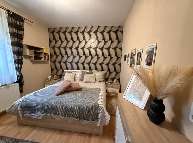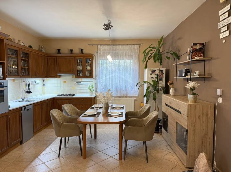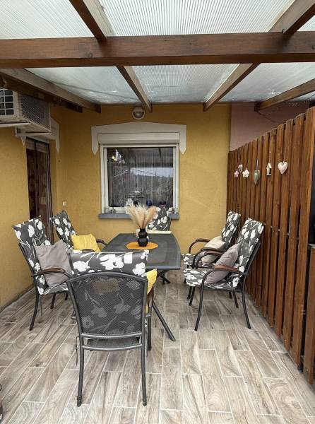 Ha olyan otthont keresel, ahol a természet közelsége, a nyugalom és az élhető terek egyszerre adottak, akkor ezt érdemes megnézned.Ez a 2006-ban épült, 117 m²-es ikerház egy 443 m²-es, intim kerttel rendelkező telken helyezkedik el, ahol valóban elszeparált életteret kapsz.A ház egyik nagy előnye, hogy a lakótér a kert szintjén található, így teljes értékű kertkapcsolatos életet élhetsz, miközben a garázs és az autóbeállók külön, az utcaszinten helyezkednek el.Elrendezés, ami valóban élhetővé teszi:- amerikai konyhás nappali + 2 külön nyíló hálószoba- dolgozósarok (home office-ra ideális), de tanuló saroknak is alkalmas- kád+zuhany+WC, illetve külön mellékhelyiség- praktikus háztartási helyiség- kamraA nappali központi eleme a hangulatos, működő cserépkályha, ami nemcsak látvány, hanem valódi fűtési alternatíva is.Amitől igazán szerethető az ingatlan:- 31,4 m²-es, nyugati tájolású terasz, így a naplementés esték garantáltak, részben fedett- intim hátsó kert + rendezett első kert- akár 3 autónak alkalmas beállási lehetőség + 17 m²-es fűtött garázs- csendes, aszfaltozott utca, nyugodt környezetMűszaki tartalom:- tégla építés- cserép tetőfedés- cirkó fűtés + cserépkályha- klíma- műanyag nyílászárók- beépített konyhaA tetőtér beépíthető, így a jelenlegi alapterület tovább bővíthető – ideális nagyobb családnak vagy értéknövelésre.Lokáció:Érd egyik kedvelt, zöldövezeti részén, a Fundoklia-völgy közelében, ahol a természet és a városi elérhetőség tökéletes egyensúlyban van. Ha egy nyugodt, mégis jól élhető otthont keresel Érden, ezt érdemes személyesen is megnézned.Hívj most, és egyeztessünk időpontot!