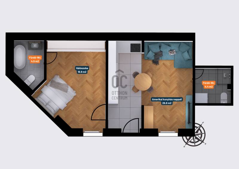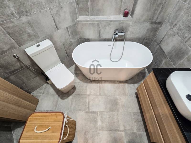 A XIII. kerületben , Budapest egyik legjobb városi lakóövezetében, Újlipótvárosban keresi új tulajdonosát egy amerikai konyhás nappali + 1 szobás, 54 m2-es, saját célra felújított lakás teljes bútorzattal. Ha modern és fiatalos, azonnal költözhető vagy bérbe adható ingatlant keres, akkor ezt feltétlenül nézze meg!MIÉRT IDEÁLIS A LAKÁS?✅ 1. emeleti, 54 m2-es, 2 szobás, 2 fürdőszobával rendelkező, modern ingatlan.✅ Felosztása: amerikai konyhás nappali és étkező, hálószoba, kádas fördőszoba-wc, zuhanyzós fürdőszoba-wc.✅ Kialakítása modern, elosztása logikus, a szobák tájolása délkeleti.✅ Pár éve teljeskörű felújításon esett át, magas minőségű és esztétikus anyagokkal, igényes burkolatokkal készült.✅ A szobát és a nappali részt laminált padlóval, a fürdőszobát, toalettet és konyhát járólappal burkolták.✅ Nyílászárók fából készültek, ablakai hő és hangszigetelt 2 rétegű üveggel szereltek, az élettér világos.✅ Fűtése szintén pár éve cserélt, esztétikus és praktikus gázkonvektor.✅ A lakás hideg-meleg vízórával, illetve elektromos mérőórával is felszerelt.✅ Közös költsége 20.000 Ft/hó.✅ A lakás homlokzata nagyságrendileg 10 cm-es dryvit szigetelést kapott.✅ A vételár tartalmazza a fotókon látható bútorzat nagy részét, gépeket, lámpatesteket is.AMIT A HÁZRÓL TUDNI KELL:➡️ XX. század elején Wellisch Alfréd által tervezett és épített földszint + 2 emeletes, zárt udvaros társasház.➡️ Az épület jelenleg átlagos állapotú, viszont a homlokzat felújítása és a társasház elektromos gerincvezetéke a közeljövőben megújul.➡️ A lakóközösség, rendezett vegyes korosztály.KÖRNYÉK ÉS KÖZLEKEDÉS:✅ XIII. kerület, Újlipótváros városrész, Radnóti Miklós utca.✅ TOP3 budapesti lakóövezet, nagyon jó mikrolokáció, pezsgő városi hangulat.✅ Kiváló infrastruktúrával és tömegközlekedéssel rendelkező, folyamatosan fejlődő terület, természetközeli környezet.✅ A Westend city center 300 méter sétatávolságra van, így gyalogosan elérhető minden, ami a hétköznapokhoz szükséges.✅ Karnyújtásnyira van számtalan kisebb-nagyobb park, játszótér, a Pozsonyi út és a Duna-part közvetlen közelében.✅ A nagyobb budapesti egyetemek tömegközlekedéssel maximum 15 perc alatt elérhetők.✅ Az autóval közlekedők a Váci úton érhetik el Buda és Pest főbb csomópontjait, valamint az M0-ás és M2-es autópályákat.✅ A környék kifejezetten vonzó a fiatalok és a kozmopolita életet kedvelők számára.AZ INGATLAN MEGTEKINTHETŐ:✅ Személyesen,✅ Irányítható 3D Websétával,✅ Online, személyes bejelentkezéssel.FINANSZÍROZÁSBAN ONLINE ÜGYINTÉZÉSSEL IS SEGÍTÜNK!➡️ Önnek csak annyi a dolga, hogy egyeztet munkatársunkkal, majd kiválasztja a hosszú távon is legkedvezőbb konstrukciót.➡️ Szakértőink 20 év tapasztalattal, fogyasztóbarát lakáshitelekkel, babaváró hitellel és teljes körű CSOK Plusz és OTTHON START program ügyintézéssel várják.➡️ Időpont-egyeztetéssel munkaidő után is elérhetők.Kifejezetten keresett ingatlan, EGYEDI LEHETŐSÉG, ne maradjon le róla!Érdeklődés esetén VÁROM HÍVÁSÁT a hét minden napján!Ez az ingatlan a \"Felező csomag\" megbízási portfólióhoz tartozik. Részletek az Otthon Centrum weboldalán.