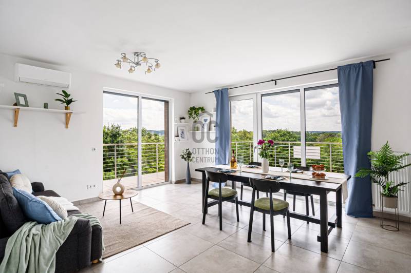 Hosszúrét egyik legszebb pontjánÖrökpanorámás, körben teraszos penthouse eladóBudapest XI. kerületében, Hosszúréten kínálok megvételre egy különleges adottságú, újszerű penthouse lakást. Természetvédelmi területtel szemben, csendes, zöld környezetben helyezkedik el, mégis kiváló közlekedéssel.Az épület:2022-ben épült, mindössze 4 lakásos társasház, zárt lépcsőházzal és gondozott kerttel. Nyugodt, kulturált lakóközösség.A lakás:90 m² lakótér + 64,4 m² terasz.Amerikai konyhás nappali, 3 külön nyíló hálószoba, kádas fürdő dupla mosdóval, valamint külön vendég WC.Dél–nyugati tájolásának köszönhetően egész nap világos, minden helyiség ablakos. Háromrétegű nyílászárók, elektromos redőnyök és szúnyoghálók biztosítják a kényelmet.Műszaki tartalom:Kondenzációs gázcirkó, 2 klíma, külön mérőórák, minőségi burkolatok és gépesített konyha.Átgondolt, hosszú távra tervezett kivitelezés.Elhelyezkedés:Természet közvetlen közelében, mégis gyors eléréssel:Kelenföld, M4 metró, valamint több buszjárat könnyen elérhető.Autóval az M1–M7 bevezető pár perc.A közelben minden megtalálható: üzletek, orvosi ellátás, bevásárlóközpontok (Eleven Center, Allee, Etele Plaza).Költségek és parkolás:Közös költség: 21 600 Ft/hóRezsi kedvező tartománybanTároló (5 m²): 6 M FtFelszíni beálló: 9 M Ft (kötelező)Utcai parkolás ingyenesKinek ideális?Annak, aki világos, tágas tereket keres, szereti a természet közelségét, de nem mondana le a városi kényelemről sem.Ez az ingatlan a \"Felező csomag\" megbízási portfólióhoz tartozik. Részletek az Otthon Centrum weboldalán.
