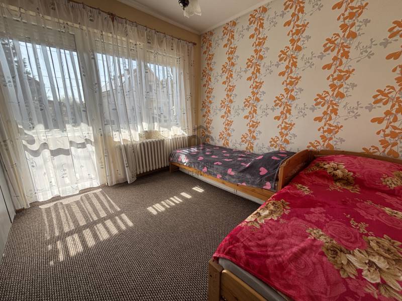 Debrecen egyik csendes, kertvárosias részén, a Biharikertben eladó egy jó állapotú családi ház, rendezett, gondozott környezetben.Az ingatlan 180 m² nettó alapterületű, elrendezése 2 nappali + 4 szoba valamint 2 fürdőszoba, így kiváló választás lehet nagyobb családok vagy akár több generáció számára is. A ház 484 m²-es telken helyezkedik el, amely parkosított, gondozott udvarral rendelkezik. A kertben fúrt kút, automata öntözőrendszer és filagória is megtalálható.Főbb jellemzők:- 1985-ben épült, minőségi anyagokból- Új tetőszerkezet, lemez cserépfedéssel- Réz villanyvezetékek- 180 m² lakótér + 90 m² szuterén, garázzsal- Nagy teraszok és erkélyek- 2 nappali - étkező - 4 szoba - 2 fürdőszoba- gázkazán + vegyes tüzelésű kazán- radiátoros fűtési rendszer- műanyag nyílászárók redőnnyel- Parkosított udvar, öntözőrendszerrel- Kerti filagória- Fúrt kút az udvarban- per- és tehermentes ingatlanAlsó szint:- konyha, kamra, nappali-étkező, hálószoba, fürdőszoba, külön toalett, előszoba.A nappaliból étkezőből és a 2 hálószobából is közvetlen kijárat nyílik a teraszra, ami kellemes kapcsolatot biztosít a kerttel.Felső szint:- nappali, 2 hálószoba, fürdőszoba toalettel, közlekedő.Pince / szuterén:A ház alatt 90 m²-es szuterén szint található, amelynek egy része tárolóként, másik része pedig garázsként funkcionál.Környék és infrastruktúra:Az ingatlan kiváló elhelyezkedésű, a közelben buszmegálló, üzletek, valamint iskolák, óvodák is megtalálhatók. A belváros rövid idő alatt elérhető.A szuterénszintnek és a nagy tereknek köszönhetően az ingatlan több generáció együttélésére vagy akár vállalkozás kialakítására is alkalmas.Az ingatlan CSOK+ és Otthon Start 3%-os hitel igénybevételére is alkalmas, így kiváló lehetőség családok számára.Teljes körű ügyintézéssel: Hitelügyintézés és ügyvédi háttér biztosított – minden lépésben segítjük Önt a vásárlás során!✅Hogy könnyebb legyen elképzelni a lehetőségeket, a hirdetésben látványterveket is talál. Ezek megmutatják, hogyan válhat ez az ingatlan egy modern, stílusos otthonná – akár már világosabb falszínekkel és letisztult bútorokkal.Ha felkeltette érdeklődését, vagy szeretné személyesen megtekinteni – akár hétvégén is –, várom megtisztelő hívását!