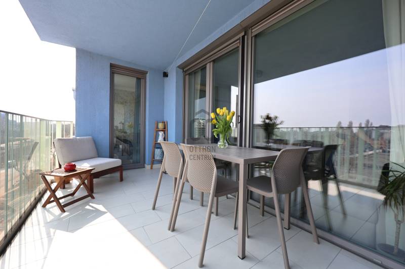 Eladó egy 3 szobás plusz gardróbos, duplakomfortos, kiváló elosztású, jól átgondolt berendezésű és prémium minőségben is kivitelezett NETTÓ 63 nm -es lakás, amely az alapterületen felül egy 11 m²-es fedett, intim terasszal is rendelkezik.A belső terek optimális kialakítása és a lakás hangulatos berendezése egyedülálló. Prémium minőségű, méretre tervezett beépített bútorok találhatók minden helyiségben.A lakásban a nappali, konyha és étkező egy légtérben található, amely két különálló hálószobával és gardróbbal is rendelkezik. Mindkettő tágas, jó elrendezésű, kényelmes és csendes. A főbb belső műszaki tartalmat tekintve minden helyiségben háromrétegű nyílászárók találhatók, szúnyoghálókkal és elektromos redőnyökkel felszerelve. Mennyezeti hűtés – fűtés teszi a dolgát, kiváltva a radiátorokat és klíma egységeket, egy éves teszthasználat után, hibátlanul!A lakás a Duna Terasz Grande lakópark egyik legjobb fekvésű épületében található. Minden igényt kielégít, ideális választás mindazok számára, akik a város szívében keresnek nyugalmat és eleganciát továbbá egy jól megfontolt befektetést.Kíváló közlekedés, közvetlen hozzáférés a Dunához, valamint a lakóparkhoz tartozó hatalmas autómentes területen található számos üzlet, kávézó és étterem közelsége teszi még egyedibbé ezen Marina parti fejlesztést.A metromegálló, a 15 -ös busz és a megújuló Duna Plaza is a közelben található!Ne hagyja ki ezt a páratlan lehetőséget – egy ilyen azonnal költözhető, jó lokációjú, szuperül bebútorozott szinte új lakás valóban ritkaság!