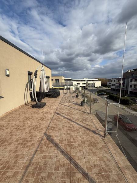 Eladó a Híd-Köz lakóparkban 102 m2, nappali plusz négy hálószobás, duplakomfortos penthouse lakás, a hozzá tartozó 118 m2 TERASSZAL!Az ingatlan tízlakásos társasház második emeletén helyezkedik el. Impozáns terasza U alakban öleli körbe a lakást, amelynek négy különnyíló szobájából,és a nappaliból a nap bármely időpontjában találunk akár napfényes, vagy árnyékos helyet a kellemes időtöltéshez.Hőszivattyús rendszer padló fűtés, mennyezet fűtés-hűtés funkciókkal szolgálja az ott lakók kényelmét.Nagycsaládoknak kitűnő választás! Az épület alatt külön helyrajzi számon nyilvántartott 21 m2 garázs is vásárolható. Ennek ára 14 millió forint.További információért, megtekintéssel kapcsolatos időpont egyeztetésért várom hívását!