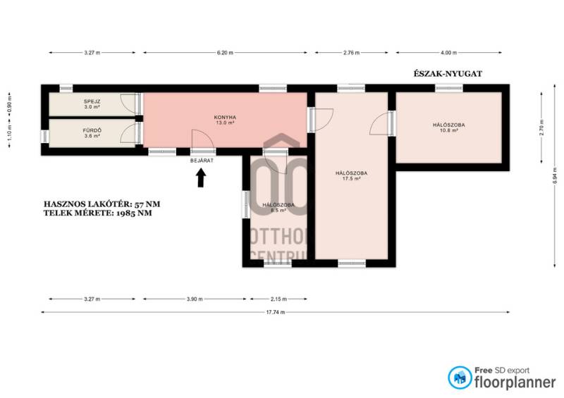 Az eladásra kínált, részlegesen felújított ingatlan Cegléd felé, Nagykőrös külterületén, csendes környezetben helyezkedik el.Elhelyezkedéséből adódóan a családi ház tökéletes életteret biztosít az ott élők számára.Önálló helyrajzi számon, \"zártkert\"-ként nyilvántartott, per- és tehermentes ingatlan! \"Kivett lakóház, udvar\": 594 nm, \"szántó\": 1391 nm, összes terület: 1985 nm.Az ingatlan a földforgalmi törvény hatálya alá tartozik, ezért KIFÜGGESZTÉSKÖTELES!A vegyes falazatú ház 2016-ban egy részleges felújításon esett át, melynek során kicserélték a villany hálózatot.A külső nyílászárókat részben fa szerkezetüre cserélték, a burkolatokat kicserélték, a felújítás a tetőt nem érintette.A felújítás során a szobák laminált parketta borítást kaptak.A praktikus elosztású bruttó 57 m²-es ingatlanban három külön nyíló szoba, fürdőszoba+WC és kamra helyiségekvalamint egy kisebb fedett terasz került kialakításra a bejárat előtt.A főfalak vastagsága 30 cm, a falak szárazak, a tető a korához képest jó állapotban van, beázástól mentes.Alacsony 210 cm belmagasság jellemzi az ingatlant.A meleg vizet újszerű, alig használt 120 literes Hajdú bojler biztosítja.Az étkezőben és a nappaliban elhelyezett 3.5 kw teljesítményű klíma gondoskodik nyáron a kellemes hőmérsékletről.Az épület fűtése hagyományos fatüzelésű kályhával megoldott, valamint lehetőség van az inverteres klímával való fűtésre is.Az 1985 m² területen többféle gyümölcsfa megtalálható, egy 54 méteres furt kút gondoskodik a kert locsolásáról.A tanya teljesen körbe kerített, friss telepítésű akác erdő öleli körül.Az udvar hátsó részén, az ólak mellett, egy fatároló is megtalálható.Az ingatlan Nagykőrös központjából 2 km-re található, betonúttol 500 méteres, jól járható füves, földes útról közelíthető meg.A közművek közül a villany bekötve, vízellátás furt kútról történik, csatorna nincs, emésztő áll a rendelkezésre.Olyan egyedülállónak vagy házaspárnak ajánlom ezt a lehetőséget, akik csendes, zöld övezetben szeretnének élni.Azok számára is ideális választás, akik állattartással vagy akár növénytermesztéssel szeretnének foglalkozni.A hirdetésben szereplő információk a megbízótól kapott adatok alapján készültek, pontosságukért felelősséget nem vállalunk!A hirdetésben szereplő információk a megbízótól kapott adatok alapján készültek, pontosságukért felelősséget nem vállalunk!Az Energetikai tanúsítvány elkészítése folyamatban van.Kérdés esetén keress bizalommal, nézzük meg együtt, és segítek a legjobb döntés meghozatalában!Ügyfeleim elégedettsége számomra a legfontosabb, így minden segítséget megadok az értékesítés folyamatában!Amennyiben a vásárláshoz még el kell adnia saját ingatlanát, készséggel állok a rendelkezésére!Az Otthon Centrum teljes kínálatával kapcsolatban forduljon hozzám bizalommal!HITEL: Amennyiben hitelt is igényelne, keresse bank független tanácsadónkat, aki segít Önnek a megfelelő konstrukció kiválasztásában, és lebonyolításában!#Nagykőrös #részlegesenfelújított #külterület #háromszoba #fürdőszoba #klíma #melléképület #garázsEz az ingatlan a \"Felező csomag\" megbízási portfólióhoz tartozik. Részletek az Otthon Centrum weboldalán.
