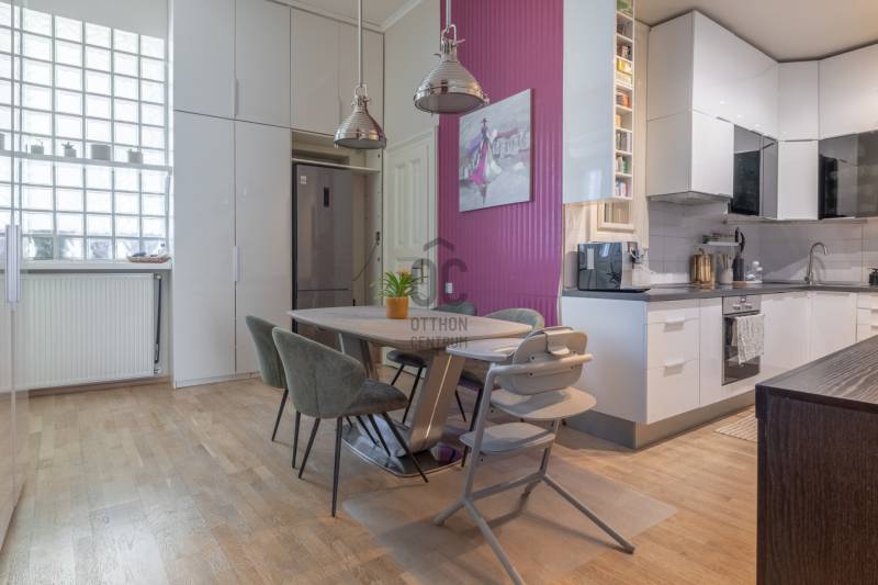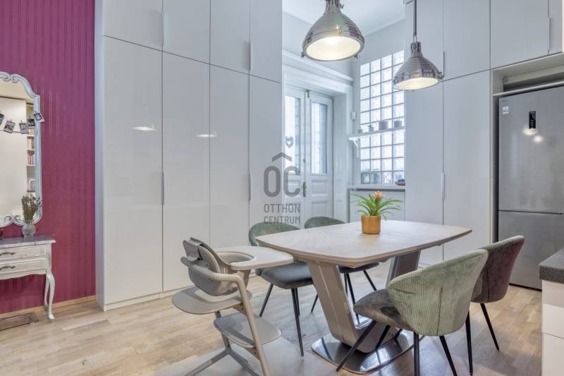 Új tulajdonosát keresi az V. kerületben, Budapest egyik legismertebb sétáló- és bevásárló utcájának csendesebb részén egy nappali + 2 hálószobás, jó állapotú téglalakás egy karakteres, századfordulós hangulatú belvárosi bérházban. Amennyiben presztízsértékű lokációban keres otthonos, harmonikus elrendezésű, igényes ingatlant, ezt érdemes személyesen is megtekintenie.MIÉRT IDEÁLIS EZ A LAKÁS: - 3. emeleti, 3 szobás, 2 fürdőszobás, nagyon hangulatos ingatlan. - Műszakilag és esztétikailag is korszerű, minden igényt kielégítő otthon. - Jelenlegi felosztása: előszoba-étkező-konyha, nappali, két külön nyíló szoba, két fürdőszoba- Wc, gardróbszoba, mosókonyha.- Tájolása kelet-nyugat, kifejezetten napos és világos, nagy terekkel rendelkező lakás. - Beépített bútorok és rengetek pakolási lehetőség segíti a logikus helykihasználást.- A vizes helyiségek modern járólappal, a további helyiségek szalagparkettával burkoltak.- Fűtéséről gáz cirkó gondoskodik, a hő-leadást radiátorok mellett a nappaliban, a gyerek szobában és a konyha-étkezőben padlófűtés biztosítja.- A megfelelő nyári hűtésről klíma gondoskodik. - Közös költség: 26.790.- Ft.- Az ingatlan tulajdoni viszonyai rendezettek.AMIT A TÁRSASHÁZRÓL FONTOS TUDNI: - 1900-as években épült, belvárosi bérház jellegű, 4 emeletes, 10 lakásos, liftes téglaépület. - Műszakilag rendszeresen karbantartott és gondozott, karakteres társasház. - Az épület megjelenését elegáns historizáló homlokzat és szépen kidolgozott építészeti részletek teszik különlegessé.- Lépcsőháza tiszta, lakóközössége vegyes korosztály, a szomszédok csendesek. - A ház pénzügyei rendezettek.KÖRNYÉK és KÖZLEKEDÉS:- Budapest V. kerület, Váci utca kedvelt része, kifejezetten belvárosi, turisztikailag frekventált környék.- Kiváló infrastruktúrával és tömegközlekedéssel rendelkező prémium terület.- Budapest egyik legkeresettebb, legjobb minőségű lokációja, elegáns, klasszikus belvárosi miliő.- A lakástól néhány perce elérhető minden, ami a hétköznapokhoz szükséges.- A Nagyvásárcsarnok, a Duna, az Erzsébet és a Szabadság híd, a Fővám tér pár perces sétatávolság.AZ INGATLAN MEGTEKINTHETŐ:- VIDEÓN,- 3D irányított WEBSÉTÁN keresztül,- személyesen,- online személyes bejelentkezéssel.FINANSZÍROZÁSBAN – ONLINE IS – SEGÍTÜNK!- Bankfüggetlen hitelcenterünk díjmentesen versenyezteti az összes bank és hitelintézet ajánlatát.- Önnek csak annyi a dolga, hogy egyeztet munkatársunkkal, majd kiválasztja a hosszú távon is legkedvezőbb konstrukciót.- Szakértőink 20 év tapasztalattal, fogyasztóbarát lakáshitelekkel, babaváró hitellel és teljes körű CSOK Plusz és OTTHON START program ügyintézéssel várják.- Időpont-egyeztetéssel munkaidő után is elérhetők.Kérdés esetén és megtekintési időponttal kapcsolatban várom hívását! Keressen bizalommal!