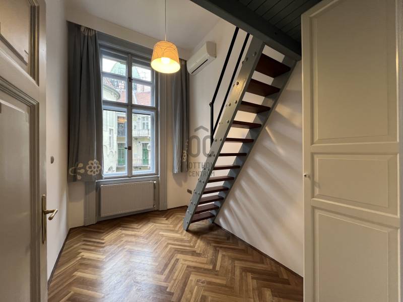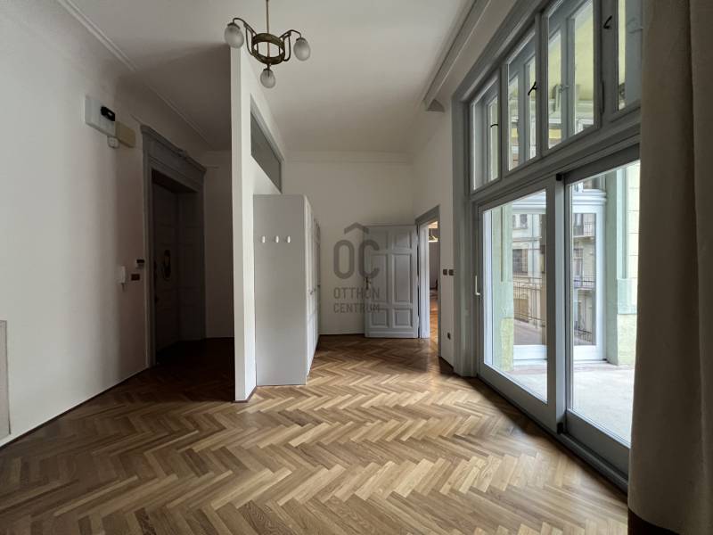 Impozáns 6 szobás, TERASZOS, nagypolgári lakás kiadó a Szabadság tér (Budapest V. kerület) szomszédságában rendezett liftes társasházban.Tágas, átgondolt terekkel, nagy belmagassággal, óriási könyvtárral egyedi designnal alakították ki, ahol a reprezentatív tér jól elkülönül a élettértől. Jelenleg bútorozatlan, azonban bútorozása megállapodás kérdése. Az egyes helyiségek:- impozáns könyvtár-nappali (33 m2),- konyha-étkező (30 m2),- tágas előtér (23 m2),- vendég WC,- terasz (7 m2),- hangulatos dolgozószoba (20 m2),- felnőtt háló és gardrób szoba (20 m2),- 3 gyerekszoba (12,10, 8m2),- 2 fürdőszoba (egyik zuhanyzós, másik zuhanyzós és kádas), - külön WC,- mosókonyha.A társasház alagsorában 5 m2 tároló tartozik a lakáshoz, a közelben mélygarázsban különbérelhető parkolóhely.Minimum 1 éves bérleti időszakra bérelhető, 2 havi kaució, 1 havi bérleti díj, valamint az első havi közös költség megfizetése mellett, akár azonnal kötözhető.A lakóközösség csendes, rendezett, emiatt hasonló életvitelt élő lakó kerestetik.Kisállatról egyeztessünk, dohányzás a lakásban nem megengedett.Elhelyezkedésének köszönhetően családoknak, reprezentatív irodának, rendelőnek, oktatási célra is kiválóan alkalmas, hiszen karnyújtásra van a Parlament, a Szt István Bazilika, uszoda és sportközpont.Iskola, óvoda, bölcsőde, játszótér, üzletek, hangulatos éttermek és kávézók is rövid sétán belül elérhetők. Bővebb információért és a megtekintéssel kapcsolatban várom hívását!
