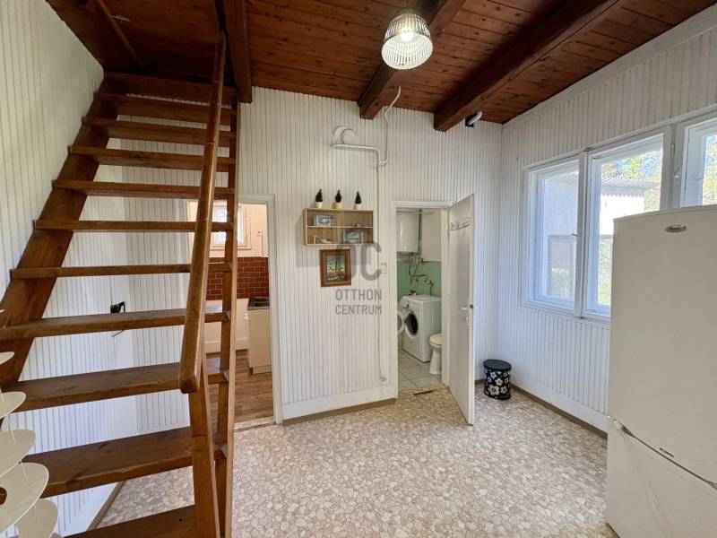Balatonakarattyán, csendes, rendezett utcában eladó egy 1156 m2-es telken fekvő, felújítandó ház, amely kiváló alapot ad egy új otthon kialakításához.A 88 m2-es ház jelenleg kétgenerációs, így felújítással több irány is könnyen megvalósítható: lehet belőle kényelmes családi otthon, két külön lakrészes megoldás, vagy akár befektetési célú ingatlan is.A telek Üh-1 övezeti besorolású, 15%-os beépíthetőséggel, ami akár 170 m²-es épület kialakítását is lehetővé teszi. Minden közmű adott, valamint garázs és melléképületek is tartoznak az ingatlanhoz.A Bercsényi strand autóval pár perc alatt, kellemes sétával fél óra alatt elérhető. A Kisfaludy sétány (magaspart) nyugodt kikapcsolódási lehetőséget kínál, a környék éttermei pedig kiváló kulináris élményt biztosítanak.Ha lát benne fantáziát, érdemes személyesen is megnézni – keressen bizalommal!Irányár: 81,9 millió Ft.