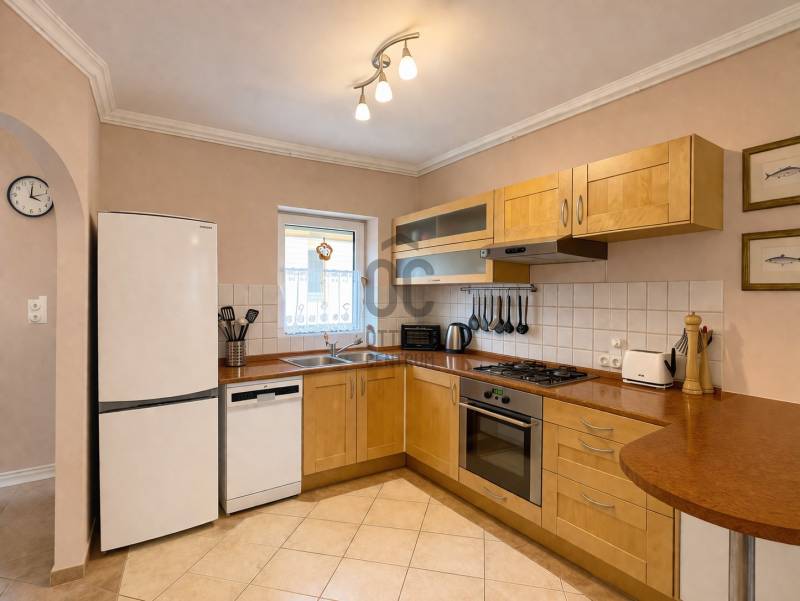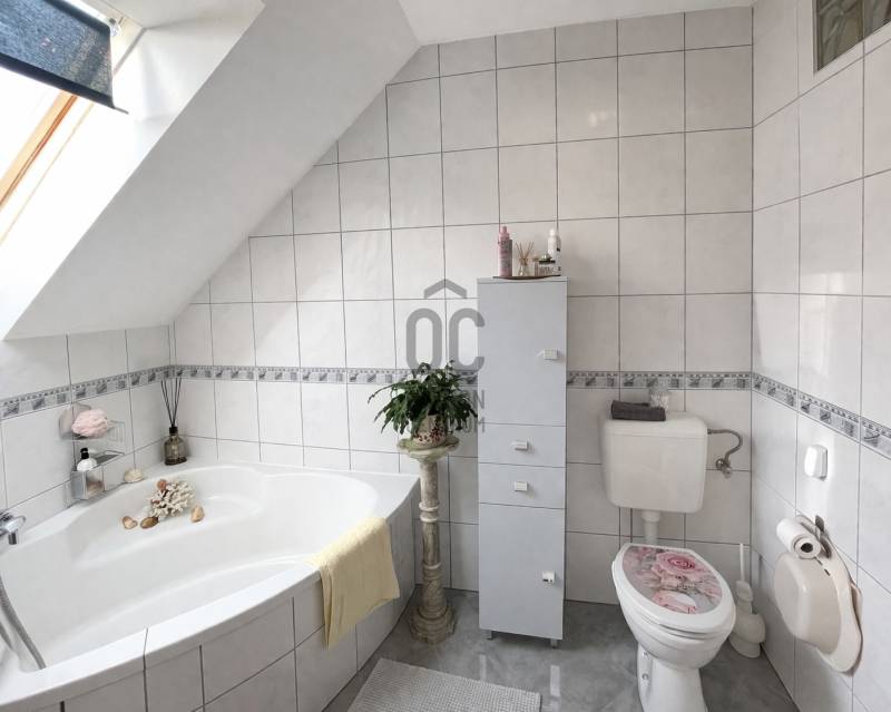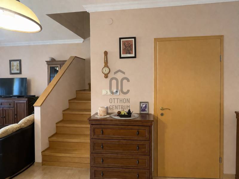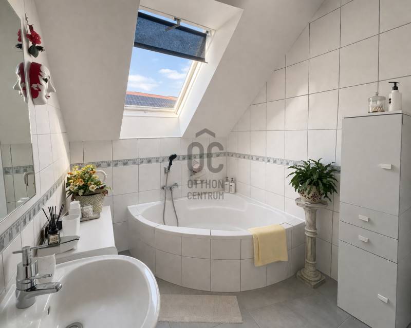 Hévíz nemcsak a világhírű gyógytaváról ismert, hanem a rendezett, barátságos kisvárosi hangulatáról is. A település kiváló választás azok számára, akik:- szeretik a nyugodt, zöld környezetet- értékelik az egészségtudatos, minőségi életformát- fontosnak tartják a jó infrastruktúrát- szívesen élnek olyan helyen, ahol a pihenés és a kikapcsolódás egész évben adottAz ingatlan főbb előnyei:- saját kis kert, amely ideális pihenésre, kikapcsolódásra- tágas garázs a hátsó udvarrészen- egyedi gázcirkó fűtés- közös tároló, praktikus tárolási lehetőséggel- duplakomfortos kialakítás- jól átgondolt, kényelmes elosztás- csendes, nyugodt környezetAz ingatlan elrendezéseAlsó szint:- Az alsó szinten egy tágas konyha–étkező–nappali található, amely kényelmes közösségi térként szolgál a mindennapokban.Ezen kívül helyet kapott még:- egy mosókonyha- egy külön WC kézmosóvalEmelet:- Az emeleten 2 külön nyíló szoba található, amelyekhez saját fürdőszobák tartoznak. Ez a kialakítás különösen kényelmes családoknak, pároknak vagy akár vendégfogadás esetén is.Kinek lehet ideális?Ez az ingatlan remek választás lehet:- állandó otthonnak- nyugodt második otthonnak- befektetésnek- azoknak, akik szeretnének Hévíz egyik kellemes, keresett részén élni, de nem szeretnének nagy kert fenntartásával foglalkozniHa olyan ingatlant keres Hévízen, amely ötvözi a kényelmet, a praktikus elrendezést, a kis kert nyújtotta szabadságot és a város különleges adottságait, akkor ez a ház kiváló lehetőség.Az alaprajz és a négyzetméterek tájékoztató jellegűek