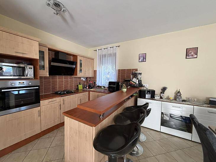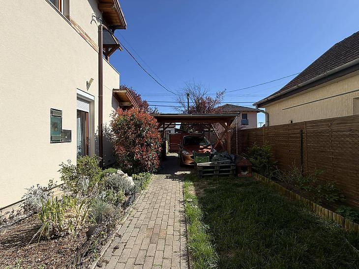 XVII. KERÜLETBEN, RÁKOSCSABA-ÚJTELEPEN ELADÓ EGY 117 NM-ES, JÓ ÁLLAPOTÚ, KÉTSZINTES IKERHÁZFÉL, 220 NM-ES TELEKKEL, TÁROLÓVAL ÉS FEDETT KOCSIBEÁLLÓVAL. Az ház 2009-ben, B30-as Porotherm téglából épült, beton alappal és vasbeton gerendával.A homlokzat 7 cm-es dryvit szigetelést kapott, a tető kőzetgyapottal szigetelt.A nyílászárók minden helyiségben 3 rétegű, dupla üvegezésű fa ablakok, redőnnyel felszerelve. A fűtést és a melegvíz-ellátást kombi cirkó biztosítja, a földszinten padlófűtéssel kiegészítve.A nappaliban kandalló és hűtő - fűtő klíma található, valamint az emeleten az egyik szobában is hűtő - fűtő klíma lett feslszerelve. A szobák parkettásak, a többi helyiség járólappal burkolt. KIALAKÍTÁS:Földszint: amerikai konyhás nappali + étkező, szoba, kamra, zuhanyzós fürdőszoba + wc, közlekedő, előszoba, terasz.Emelet: 3 szoba, kádas fürdőszoba + wc, közlekedő, erkély. A KÖRNYÉK:Rákoscsaba-Újtelep csendes mellékutcája. A közelben, pár perc sétára található a Rákoscsaba vasútállomás, valamint a 176E, 198, 276E jelzésű buszok és a 998-as éjszakai járat. Közelben található bevásárlási lehetőség, gyógyszertár, óvoda, iskola, játszótér. Az M0-ás autópálya könnyen elérhető.IRÁNYÁR: 149.8 M FTVEVŐINK RÉSZÉRE A KÖZVETÍTÉS DÍJTALAN!A hirdetésben szereplő adatok tájékoztató jellegűek.