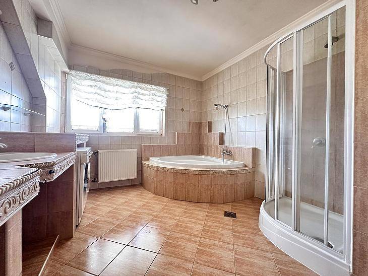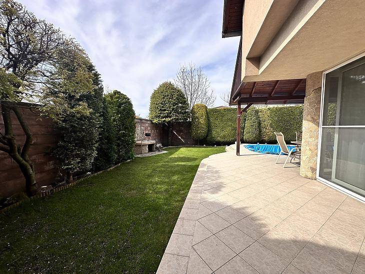 Ikerház eladó Budapest XVI. kerületében – Rákosszentmihály csendes, kertvárosi részénBudapest XVI. kerületének egyik legkedveltebb, nyugodt utcájában, Rákosszentmihály Zuglóhoz közeli részén kínálunk megvételre egy nettó 220 nm-es, kétszintes + tetőteres, nappali + 4 szobás, dupla komfortos ikerházat, kiváló műszaki állapotban.Az ingatlan dél-nyugati fekvésű, így egész nap világos, napfényes tereket biztosít. A gondosan kialakított, teljesen intim, beláthatatlan kert tökéletes helyszín pihenéshez és családi programokhoz.Főbb jellemzők:Nettó 220 m² lakótér Nappali + 4 szoba Dupla komfort Két szint + tágas tetőtér Önálló helyrajzi szám, tehermentes Műszaki tartalomÚj, energiatakarékos kazán Kombinált padlófűtés + radiátoros rendszer Klímaberendezés Modern kamerarendszer és riasztó Elektromos kapu és garázsnyitó Extrák – ami igazán különlegessé tesziFűthető kültéri medence – akár hosszabb szezonban is használható Hangulatos kerti sütő és pihenőtér Tágas tetőtér, amely jelenleg hobbi- és konditérként funkcionál (igény szerint alakítható) ElrendezésAlsó szint:Előszoba Nappali Konyha + étkező Kamra Mellékhelyiség Garázs Felső szint:3 külön nyíló szoba Gardrób 2 fürdőszoba Mellékhelyiség KözlekedésPár perc sétával elérhető buszjáratok:31, 92, 92A, 130, 131, 144, 231, 931Irányár: 299,9 millió FtFinanszírozásAz ingatlan banki hitellel is megvásárolható, teljes körű, díjmentes ügyintézési segítséget biztosítunk.A hirdetésben szereplő adatok tájékoztató jellegűek.