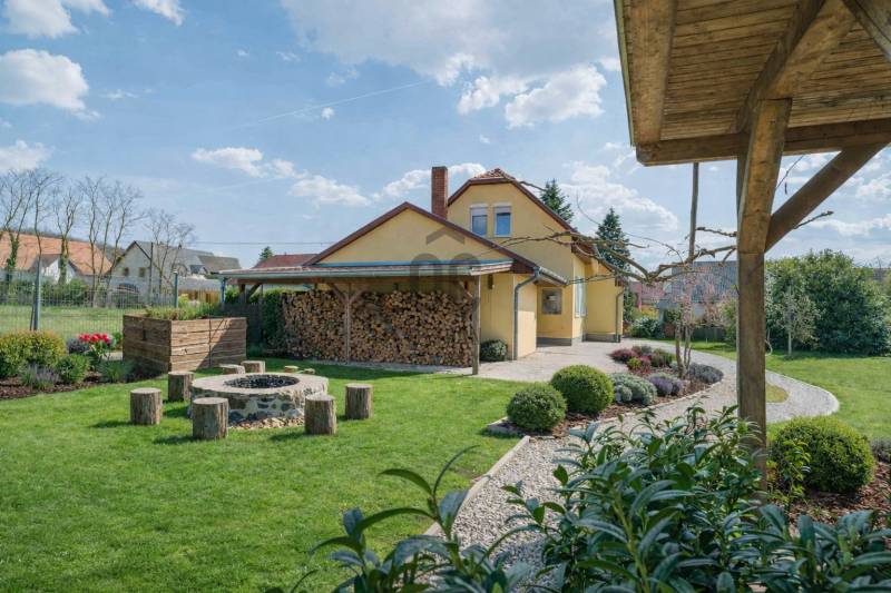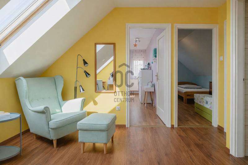 Gyenesdiáson kínálunk eladásra egy 5 szobás, 2 fürdőszobás, kiváló adottságokkal rendelkező, néhány éve felújított családi házat, csendes, rendezett környezetben. Az ingatlan ideális választás lehet nagycsaládosoknak, többgenerációs együttélésre, de akár azoknak is, akik a Balaton közelében keresnek tágas, világos otthont.Az ingatlan főbb jellemzői: - 5 kényelmes szoba- 2 fürdőszoba- külön WC-k mindkét szinten- garázs- szépen karbantartott, rendezett udvar- pergola a kerti kikapcsolódáshoz- kombinált fűtési rendszer: - vegyes tüzelésű kazán - gázkazánHelyiségek elosztása:Földszint:- tágas, világos nappali- külön dolgozószoba- nagy konyha étkezővel- fürdőszoba és WC külön helyiségbenTetőtér:- nagy előtér, amely kiválóan használható dolgozószobának, moziszobának vagy közösségi térnek- 3 tágas, kényelmes szoba- fürdőszoba és WC külön helyiségbenMűszaki állapot, felújítás: Az ingatlant néhány éve felújították, ennek köszönhetően műszaki és esztétikai állapota is kedvező:- 10 cm nikecell szigetelés az oldalfalakon- 20 cm kőzetgyapot szigetelés- cserépfedésű tető- műanyag nyílászárók- tágas, jól kihasználható, világos helyiségekKültérA ház egyik nagy előnye a gyönyörűen rendezett kert, amely ideális pihenésre, családi vagy baráti összejövetelekre. A pergola kellemes helyszínt biztosít a szabadtéri kikapcsolódáshoz, emellett a telek adottságai lehetőséget nyújtanak medence kialakítására is. (a medencés fotó látványterv)Az ingatlan kiváló nyaralónak, nagyobb családnak, vagy befektetésre egyarántA négyzetméterek és az alaprajz tájékoztató jellegűekTovábbi információért hívjon bizalommal