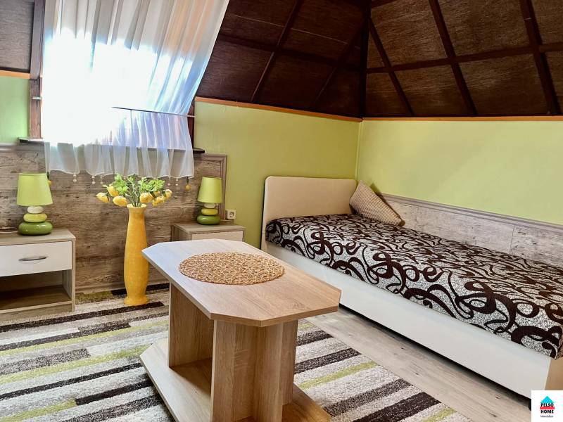 Balatoni életérzés, különleges ajánlat!Balatonpart és Strand 450m!Balatonbogláron, csendes utcában eladó ez a 90m2-es belső kétszintes tégla lakás teljes bútorzattal, 50m2-es emeleti napozóterasszal, szép panorámával, saját garázzsal és kerttel!A lakást az első emeleten található ahová a zárt kb 100m2 nagyságú saját kerttől juthatunk fel. A belső két szintes lakás alsó részén nagy Nappali, Felszerelt Konyha és Étkező, Közlekedő nagy beépített szekrényekkel, Fürdőszoba (zuhany + Wc), Kamra, és hatalmas DNY-i 50m2-es emeleti terasz tartozik ami részben fedett és teljesen privát! A felső szinten további három hálószoba, gardrób, fürdőszoba káddal és WC. Az ingatlan fűtése elektromos (3fázis), a hűtésről mindkét szinten külön klíma gondoskodik. A meleg víz ellátást gázkazán biztosítja valamint gáz fűtés is visszaállítható igény esetén. Szép burkolatok, jó minőségű műanyag ablakok, jó térkihasználás... igazi tágas világos lakás!A lakáshoz saját teljes értékű különálló garázs tartozik. A társasház zárt udvarában saját közösségi kertel rendelkezik... magaságyások, gyümölcsfák, kemence, grill, pince és kerti kiülő és sok zöldfelület!Nyaralónak, Állandó lakhatásra, Befektetésnek is kiváló választás!Keressen a részletekért és legyen Ön is a Balaton szerelmese!Plattensee-Lifestyle, Sonderangebot!Plattensee und Strand 450 m entfernt!In Balatonboglár, in einer ruhigen Straße, steht diese 90 m² große, zweistöckige Backsteinwohnung mit kompletter Möblierung zum Verkauf. Sie verfügt über eine 50 m² große Sonnenterrasse im Obergeschoss, einen herrlichen Panoramablick, eine private Garage und einen Garten. Die Wohnung befindet sich im ersten Obergeschoss und ist vom ca. 100 m² großen, umzäunten Privatgarten aus zugänglich. Im unteren Bereich der zweistöckigen Wohnung befinden sich ein großes Wohnzimmer, Einbauküche mit Essbereich, ein Flur mit großen Einbauschränken, Badezimmer (Dusche + WC), Speisekammer und eine riesige, nach Südwesten ausgerichtete, 50 m² große Terrasse im Obergeschoss, die teilweise überdacht und komplett privat ist. Im Obergeschoss befinden sich drei weitere Schlafzimmer, ein Bürozimmer, Badezimmer mit Badewanne und ein WC. Die Wohnung wird elektrisch (Drehstrom) beheizt, die Kühlung erfolgt über separate Klimaanlagen auf beiden Etagen. Warmwasser wird über einen Gasboiler bereitgestellt, und die Gasheizung kann bei Bedarf wieder eingeschaltet werden. Schöne Beläge, hochwertige Kunststofffenster, optimale Raumaufteilung ... eine wirklich geräumige und helle Wohnung!Die Wohnung verfügt über eine eigene, vollwertige Garage. Die Wohnanlage verfügt über einen eigenen Gemeinschaftsgarten im ummauerten Innenhof... Hochbeete, Obstbäume, Backofen, Grill, Weinkeller und Sitzbereich im Garten sowie viel Grünfläche!Eine ausgezeichnete Wahl als Ferienhaus, Hauptwohnsitz oder Kapitalanlage! Entdecken Sie weitere Details und lassen Sie sich vom Balaton verzaubern!
