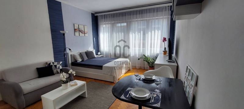 Újlipótváros kedvelt részén egy rendezett, liftes társasház magas emeletén, lépcsőházból nyíló különleges otthon várja új Bérlőjét!Tájolásának köszönhetően napfényes – télen is világos. A 31 nm-es, fiatalos hangulatú, praktikusan berendezett lakás egy tágas szobával, előszobával egy légtérben elhelyezkedő ablakos konyhával és fürdővel rendelkezik. Az ingatlan bútorozott, gépesített és teljesen felszerelt.A lakásban távfűtés van egyedi mérővel, amelynek 4150Ft/hó a díja, a melegvíz felmelegítése éjszakai árammal van megoldva. Nyáron a megfelelő hőmérsékletet klíma biztosítja.Az ingatlan minimum 1 éves határozott bérleti idővel kiadó.A bérleti díj 200.000Ft plusz a rezsi költségek/hó. A szerződéskötéskor két havi kaució és egy havi bérleti díj szükséges.Közös költség: 9.300Ft/hó.Tulajdonos kérésére nem költözhető kisállattal, gyermekkel! Dohányzás a lakásban nem megengedett!Pihenésre és szórakozásra számos lehetőséget nyújt a 10 perces séta távolságra lévő Westend City Center, a 5 percre lévő Vígszínház és a Nyugati pu., továbbá a Duna part, a Pozsonyi út kávézói - éttermei, a Szent István park, de 15 perc en belül gyalogosan elérhető a Margit sziget is.Központi elhelyezkedéséből adódóan a közlekedés Pestre és Budára egyaránt kiváló! A Nyugati pályaudvar, M3, metró, 4/6-os villamos 5-7 perc gyalogosan.További információkért és a megtekintéssel kapcsolatosan, hívjon bizalommal!