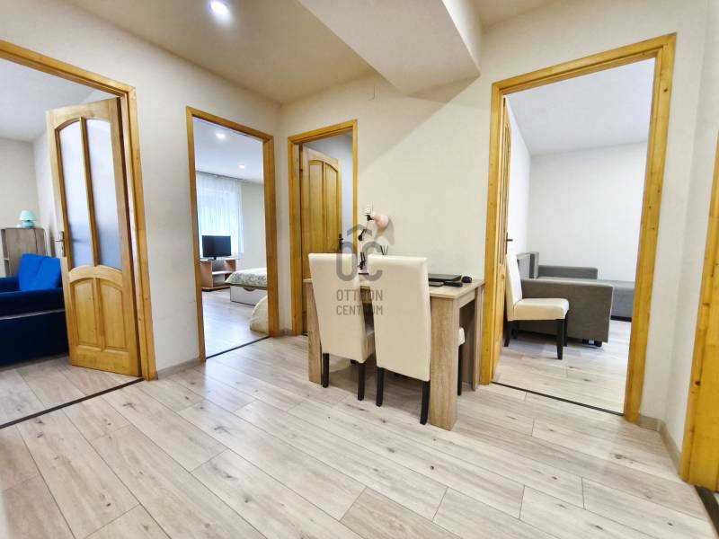 Debrecen közkedvelt részén, a Dobozi lakótelepen, a belvárostól néhány perc távolságra eladó egy 76 m²-es, téglaépítésű társasház földszintjén található lakás.Az ingatlan tágas terekkel és 3 külön nyíló szobával rendelkezik, így ideális választás családok számára, de kiváló elhelyezkedése miatt befektetésnek is remek lehetőség.Főbb jellemzők:-76 m² alapterület-3 külön nyíló, világos szoba-konyha étkezővel-2 fürdőszoba (kádas és zuhanyzós)-mosókonyha-műanyag nyílászárók redőnnyel és szúnyoghálóval-nyugati tájolás-egyedi elektromos infra fűtés-villanybojler-tégla építésű társasházA lakás teljes körű felújításon esett át, amely során az alábbi munkálatok történtek:-villanyhálózat cseréje-vízvezetékek cseréje-új burkolatok a fürdőszobákban-minden helyiség új laminált padlóburkolatot kapott-korszerű elektromos fűtésrendszer kialakítása-új konyhabútor-műanyag nyílászárók redőnnyel-új bejárati ajtó-nyitott autóbeálló 1 helyAz ingatlan kiváló közlekedési kapcsolatokkal rendelkezik, így a belváros gyorsan és könnyen elérhető.A közelben megtalálható:-parkok és zöldterületek-iskola és óvoda-üzletek, gyógyszertár-cukrászda és szolgáltatásokAjánlom:-családoknak, a tágas terek és a 3 külön nyíló szoba miatt-befektetőknek, hiszen a belváros közelsége miatt könnyen kiadhatóAmennyiben az ingatlan felkeltette érdeklődését, keressen bizalommal további információért vagy megtekintés egyeztetéséhez.