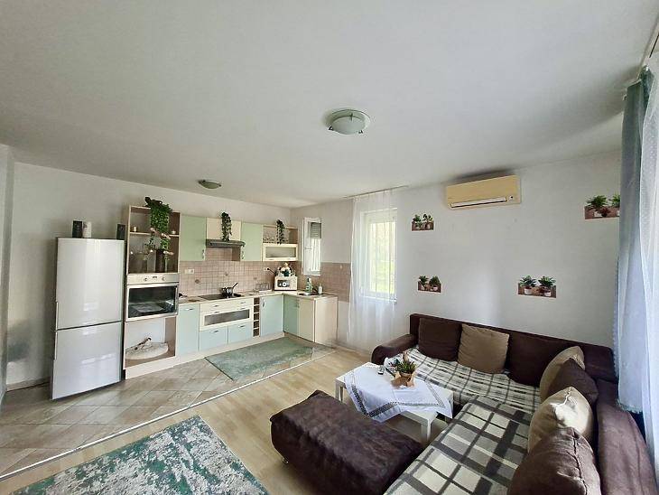 Eladásra kínálunk Dunakeszi közkedvelt részén, az Alagliget lakóparkban egy modern, földszinti, kertkapcsolatos, 45 nm-es lakást.A 2006-ban épült, rendezett és folyamatosan karbantartott társasház külsőleg 10 cm-es hőszigetelést kapott, amely hozzájárul az alacsony fenntartási költségekhez. A lakás kiváló állapotú, praktikus elrendezésű: amerikai konyhás nappali, külön hálószoba, fürdőszoba, külön WC, valamint előtér került kialakításra.A lakás műanyag nyílászárókkal felszerelt, fűtését turbó kombi cirkó biztosítja, míg a nyári hőségben hűtő-fűtő klíma gondoskodik a kellemes hőérzetről. A lakás egyik nagy előnye az alacsony rezsiköltség.A nappaliból egy 22 nm-es, saját használatú, rendezett kertbe juthatunk ki, amely ideális pihenésre vagy akár baráti összejövetelekre is.A lakáshoz két gépkocsi-beálló tartozik, az egyik elektromos kapun keresztül megközelíthető, mely külön megvásárlandó 3.5M forintért, a másik közvetlenül a társasház előtt található.Amennyiben egy azonnal költözhető, jól fenntartható, kertkapcsolatos otthont keres Dunakeszin, ez a lakás kiváló választás. Kérdés vagy megtekintési szándék esetén keressen bizalommal.Amennyiben a vásárláshoz hitelre lenne szüksége, bankfüggetlen hitel tanácsadóink ingyenesen segítenek megtalálni a legmegfelelőbb hitel konstrukciót az Önök számára, az ország összes pénzintézete közül.