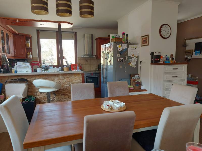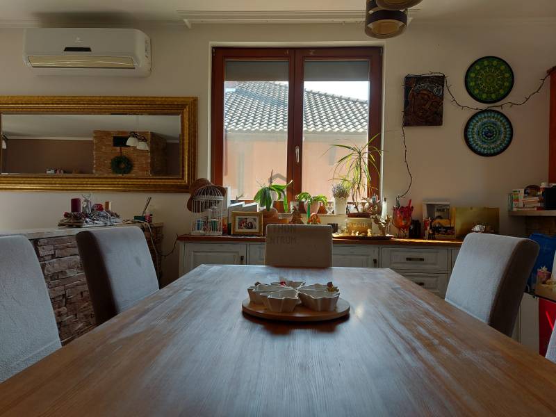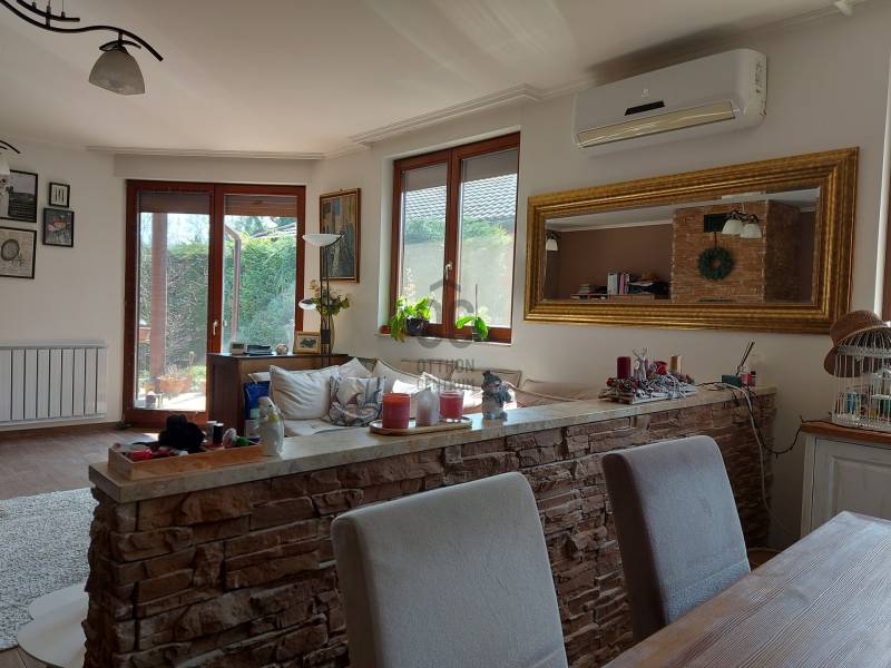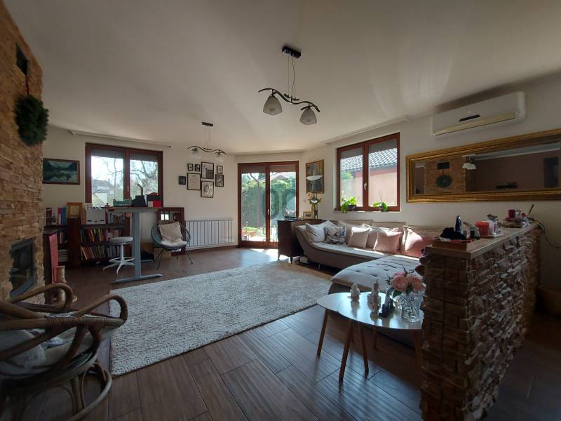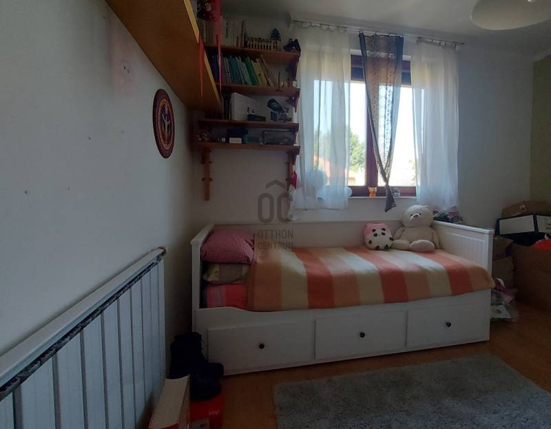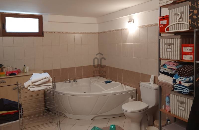 Tatán, a Fácános kert lakóparkban, exkluzív környezetben, 5 percre a tatai Öreg-tótól, csendes helyen, autóval és tömegközlekedéssel is remekül megközelíthető elegáns, amerikai jellegű, zárt sorompós, biztonságos lakóparkban eladó egy modern, 2008-ban épült, 2 szintes ház. Az épület nagyon izgalmas kialakítású, két szinten, összesen 180 m2-es. A földszinten igényes ízléssel kialakított kandallós nappalit, vele közös térben praktikusan bútorozott gépesített konyhát, étkezőt, két külön bejáratú hálószobát, fürdőszobát és külön WC–t találunk. A nappalihoz intim terasz kapcsolódik, ahonnan szinte az egész kertre rálátunk. A félszuterénben hálószoba, gardróbszoba, fürdőszoba - szauna – kondiszoba, háztartási helyiség, kazánház és egy 2 autó számára alkalmas garázs került kialakításra. A ház jól élhető, ideális mérete miatt otthonosan belakható és egy család igényeit is remekül kiszolgálja.A lakóház két szintje belső lépcsővel van összekötve, de életviteltől függően a szintek akár teljesen szeparálhatóak is. A ház a mai kor igényeinek megfelelő: külső hőszigeteléssel, újszerű állapotú prémium kategóriás fa nyílászárókkal rendelkezik. A belső térbe a legigényesebb anyagok kerültek beépítésre, jelenleg is minden újszerű állapotú. A házban található extrák (a teljesség igénye nélkül): kandalló, első osztályú csempék, a konyhában indukciós tűzhely, mosogatógép, elektromos légkeveréses sütő, elszívó, márkás csaptelepek, kábel TV, internet, wi-fi minden szobában, kiépített riasztórendszer, automata redőnyök.A kert automata öntözőrendszerrel ellátott. A kétállásos garázs (30 m2) és a kerti tároló a járművek és egyéb holmik a tárolására adnak megoldást, a kert pedig extra lehetőségeket biztosít a kikapcsolódásra.Ez az otthon remekül élhető. A lakótérhez kapcsolódó ősfás kert kellő intimitással rendelkezik, a szomszédok irányából és az utca felől is elrejtett. A tömegközlekedés kiváló, buszmegálló pár percre, a tatai Öreg-tó pár perc gyalog, az M1 autópálya, a golfpálya, a wellness központ és a bevásárlóközpontok is 10 perc alatt elérhetőek.Gondolt már arra, hogy egy minden igényt kielégítő, kertvárosi ház legyen az otthona? Ha igen, akkor a megtekintés miatt keressen bizalommal, akár hétvégén is.English: Comfortable modern apartment building - a stylish home!In Tata, in the Fácános Kert residential park, in an exclusive environment, 5 minutes from the Öreg-tó Lake in Tata, in a quiet location, in an elegant, American-style, closed, secure residential park with a barrier, easily accessible by car and public transport, a modern, 2-storey house built in 2008 is for sale. The building has a very exciting design, on two levels, with a total of 180 m2. On the ground floor, there is a living room with a fireplace designed with high taste, a practically furnished mechanized kitchen in common with it, a dining room, two bedrooms with separate entrances, a bathroom and a separate toilet. An intimate terrace is connected to the living room, from which we can see almost the entire garden. In the semi-basement, there is a bedroom, a wardrobe room, a bathroom - sauna - fitness room, a utility room, a boiler room and a garage suitable for 2 cars. The house is livable, ideal in size, and serves the needs of a family well.The two levels of the house are connected by an internal staircase, but depending on the lifestyle, the levels can be completely separated. The house meets the needs of today: it has external thermal insulation, premium category wooden windows and doors in like-new condition. The most demanding materials have been installed in the interior, and everything is currently in like-new condition. The extras in the house (without claiming to be complete): fireplace, first-class tiles, induction stove in the kitchen, dishwasher, electric fan oven, extractor hood, branded faucets, cable TV, internet, wi-fi in every room, built-in alarm system, automatic shutters.The garden is equipped with an automatic irrigation system. The two-car garage (30 m2) and the garden storage provide a solution for storing vehicles and other belongings, and the garden provides extra opportunities for relaxation.This home is great to live in. The old-tree garden connected to the living space has enough intimacy, hidden from the neighbors and the street. Public transportation is excellent, a bus stop is a few minutes away, the Old Lake in Tata is a few minutes on foot, the M1 highway, the golf course, the wellness center and shopping centers are all within 10 minutes.Have you ever thought about making a suburban house that meets all your needs your home? If so, then contact us with confidence for a viewing, even on weekends.