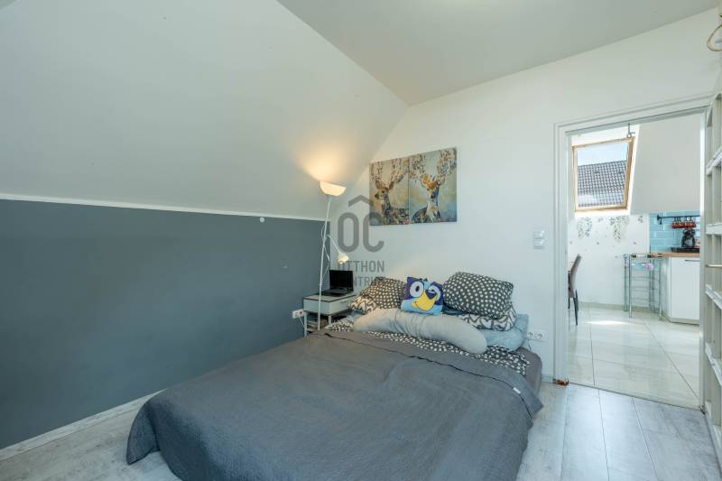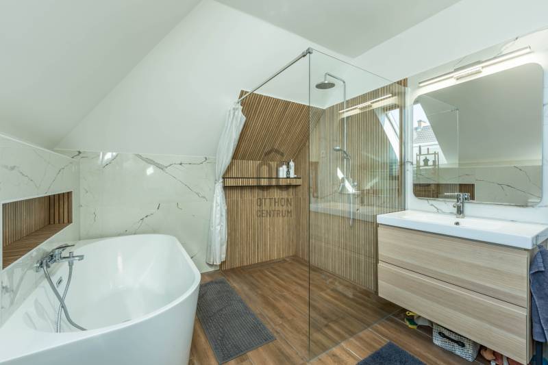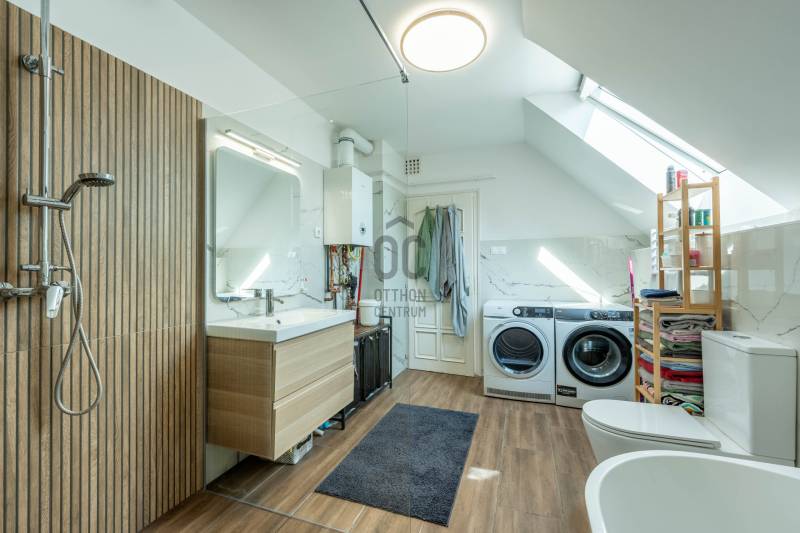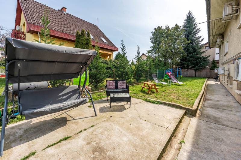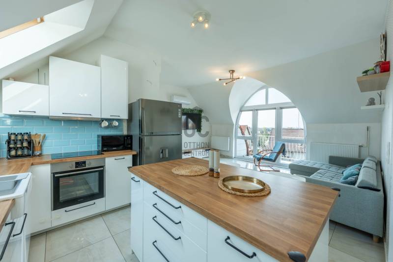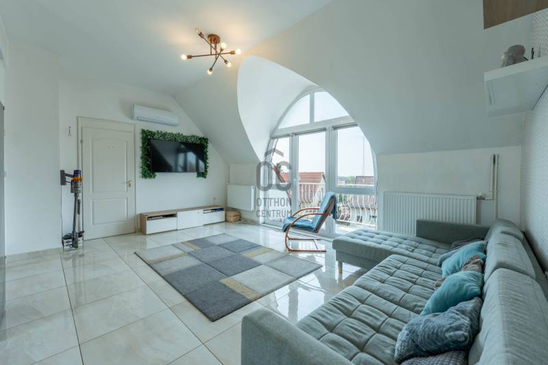 Eladó Budapest XVIII. kerületének erdőközeli részén, az Újpéteri városrészben egy 83 m²-es, világos tetőtéri lakás egy mindössze 3 albetétes társasházban.Az ingatlan különlegessége nemcsak a kiváló elrendezés és a kiváló közlekedés, hanem az is, hogy a környéken ritkaságnak számító, kedvező, 1 millió Ft/m² árkategóriában érhető el.A lakás praktikus kialakítású, ideális választás lehet akár családok, akár első lakásvásárlók számára.Elrendezésamerikai konyhás nappali2 külön nyíló szobafürdőszoba + WC (1 éve felújítva)külön WCgardrób szobaA nappaliból egy 4 m²-es, délnyugati tájolású erkély nyílik, amely ideális helyszín a pihenéshez vagy akár esti kikapcsolódáshoz. Emellett egy nagyobb, közös terasz is rendelkezésre áll.Főbb jellemzők83 m² lakótér45 m² saját kert használat1 db zárt udvari autóbeálló + utcai parkolási lehetőségprivát, zárt lépcsőház saját rakodóhellyelkülön tároló + padlás, amely részben burkolt, így jól használható extra tárolásravilágos, jó elosztású terekMűszaki állapot2025-ben korszerűsített gázcirkó fűtésradiátoros hőleadásfelújított fürdőszobafelújított gázvezeték és bélelt kémény1 db hűtő-fűtő klíma1 fázis, 32A elektromos hálózatgépesített, beépített konyhabútor és a hűtő a vételár részét képeziA lakás jelenlegi állapotában is jó, azonban minimális ráfordítással könnyedén modern, egyedi otthonná alakítható.KörnyezetA társasházban mindössze 2 lakás és 1 üzlethelyiség található, így a lakóközösség kifejezetten nyugodt és családias.A környék csendes, kertvárosi hangulatú, ugyanakkor a mindennapi élethez szükséges infrastruktúra könnyen elérhető:kiváló tömegközlekedés (buszmegálló nagyon közel)bevásárlási lehetőségekóvoda, iskolaorvosi rendelőAz ingatlan közvetlen közelében található a Péterhalmi-erdő, amely kiváló lehetőséget nyújt a természet közelségének élvezetére.Ideális választás kutyasétáltatáshoz, kiránduláshoz vagy akár egy hangulatos szabadtéri sütögetéshez is.Kinek ajánlom?első lakásvásárlóknakkisebb családoknakbefektetőknek a kedvező négyzetméterár miattazoknak, akik kertvárosi nyugalmat keresnek, mégis jó elérhetőséggelSzemélyesen is megtekintené?Ne csússzon le erről a ritka lehetőségről! Keressen bizalommal, és egyeztessünk időpontot a megtekintésre.Igény esetén hitelszakértőnk díjmentesen bemutatja az összes bank ajánlatát, és segít megtalálni az Ön számára legkedvezőbb finanszírozási megoldást, így a vásárlás gyorsan és biztonságosan lebonyolítható.