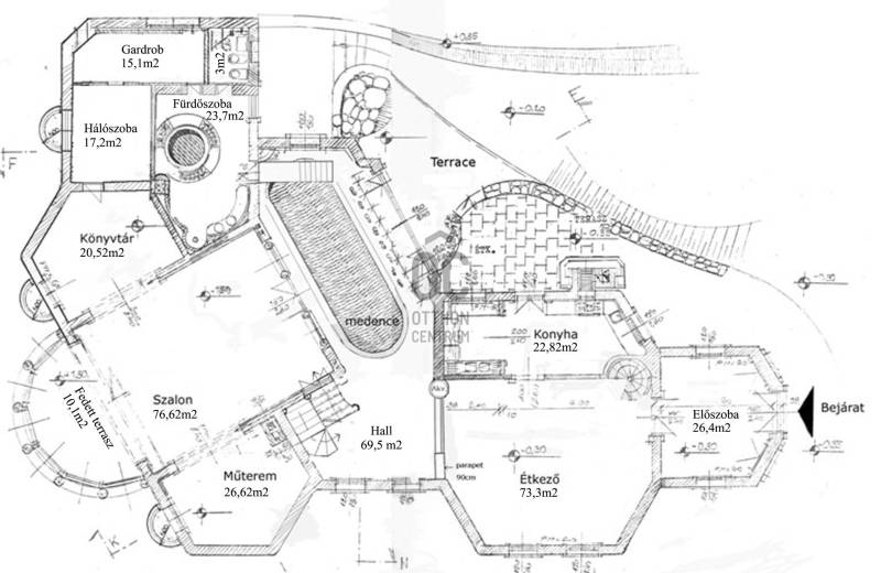 Egyedülálló lehetőség a Dunakanyar szívében – befejezésre váró, exkluzív ingatlan TahibanA Dunakanyar egyik legkedveltebb településén, Tahitótfalu Tahi oldalán kínáljuk megvételre ezt a különleges adottságokkal rendelkező, mediterrán jellegű, nagyléptékű ingatlant, amely jelenlegi állapotában befejezésre vár, ugyanakkor rendkívüli lehetőségeket rejt magában.Az 1502 nm-es telken elhelyezkedő, közel 700 nm alapterületű, négy szintes épület olyan ritka térbeli és funkcionális adottságokkal rendelkezik, amely ideálissá teszi magas igényű magánrezidencia, illetve üzleti vagy szolgáltató funkciójú ingatlan kialakítására egyaránt.Az épület tervezése átgondolt, egyedi koncepcióra épült, a tágas, világos terek, a nagy belmagasság és a bőséges nyílászárók mind azt szolgálják, hogy egy valóban reprezentatív, időtálló és elegáns ingatlan születhessen meg az új tulajdonos elképzelései szerint.A földszinten kialakított, impozáns méretű nappali–szalon, a különleges akusztikai adottságú könyvtárszoba, valamint a jól szeparálható lakó- fürdőmedence/wellness-és kiszolgáló egységek lehetővé teszik, hogy az épület egyszerre legyen otthonos és reprezentatív. A tér kifinomultságát Róth Miksa üvegfestő és mozaikművész munkáinak mintájára készült, egyedileg szabott nyílászárók és térelválasztók teszik teljessé.Az emeleti elrendezés önálló lakóegységként is értelmezhető, míg az alagsorban kialakított wellness részleg – előkészített török gőzfürdővel, finn szaunával, merülőmedencékkel és konditeremmel – prémium életérzést vagy szolgáltatási színvonalat biztosíthat.Kinek ideális ez az ingatlan?Ez az épület kiváló választás lehet:nagycsaládos vagy több generációs otthonnak,exkluzív magánrezidencia kialakítására,wellness központnak, szépségszalonnak,egészségügyi- vagy magánrendelőnek,vállalkozás vagy prémium szolgáltatás helyszíneként,illetve mindazok számára, akik nem kompromisszumokban, hanem lehetőségekben gondolkodnak.Ez az ingatlan kivételes alap: egy olyan projekt, amelyből a Dunakanyarban ritka exkluzív érték hozható létre – legyen szó magas igényű tulajdonosi elképzelésekről vagy üzleti célú hasznosításról.Amennyiben egy sokoldalúan hasznosítható, prémium projektet keres a Dunakanyarban, várom bizalommal megkeresését.Az energetikai tanúsítvány készítése folyamatban van, amint rendelkezésre áll, úgy azzal a hirdetés frissítésre kerül.#BefektetésiLehetőség #ProjektIngatlan #VállalkozásraAlkalmas #WellnessIngatlan #ÜzletiCélra #FejlesztésiLehetőség