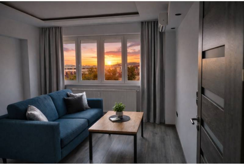 Eladó lakás Budapesten naplemente panorámával .