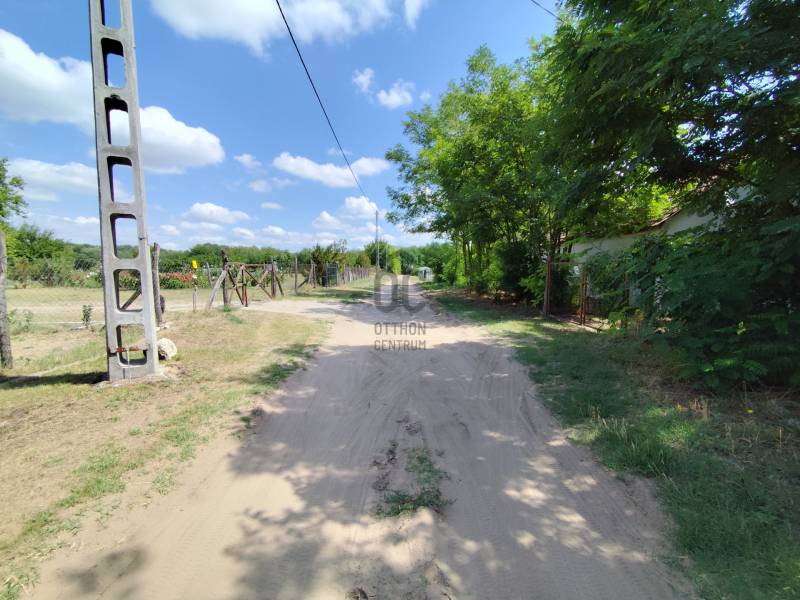 Adatok:- Telek területe: 4055 m², ebből 1000 m² körbekerítve- Ház nettó 60 m²- Vályogépítésű- Műanyag ablakok, egy db faablak- Fűtés-hűtés 2 db klímáról megoldott- H tarifa- Főépületben kútvíz van bevezetve- cseréptető- külön lakrész szoba - konyha ( ide víz nincs bevezetve)- Gáz és víz a telekhatáron„Az energetikai tanúsítvány készítése folyamatban van, amint rendelkezésre áll, úgy azzal a hirdetés frissítésre kerül.”Ez az ingatlan a \"Felező csomag\" megbízási portfólióhoz tartozik. Részletek az Otthon Centrum weboldalán.