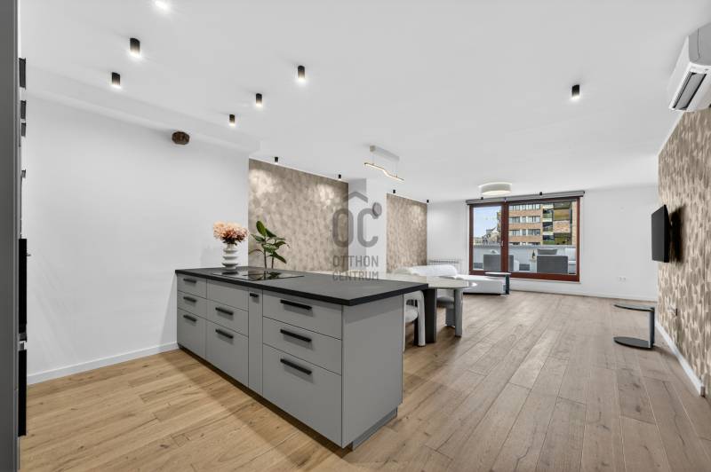 Olyan penthouse, ahol a 40 m²-es terasz valódi élettér. Jacuzzi, kültéri bútorok, zavartalan nyugalom – miközben pár lépésre vagy az Andrássy úttól.Bent egy 65m2-es amerikai konyhás nappali fogad: legyen szó baráti összejövetelről, vagy meghitt családi összejövetelről: itt egy nagyobb társaság kényelmesen elfér.A lakás számokban:• 176 m² összterület• 131 m² belső lakótér• 40 m² privát terasz jacuzzival• 3 hálószoba• 2 fürdőszoba• 2026-ban teljes körű, garanciális felújítás• Teljes bútorzat és beépített bútorok is a vételár része• 3 parkolóhely opcionálisan vásárolható pluszbanAz épület:2008-ban épült24/7 portaszolgálat és biztonságKarbantartott, prémium szintű házMélygarázs nagy autók számára is kényelmes méretekkelLift, frissen felújított hotel szintű közös területekMire ideális?Saját használatra, ha fontos a belvárosi presztízs és a kültéri élettérCéges reprezentációraNagykövetségi vagy corporate bérbeadásraStabil, évi ~42.000 EUR bevételt termelő befektetéskéntMiért ritka?Belváros + ekkora terasz + jacuzzi + 3 háló + parkolók + újszerű ház.Ez a kombináció gyakorlatilag nem jön szembe a piacon.Ha olyan ingatlant keresel, ahol a terasz nemcsak „jó, ha van”, hanem a lakás fő attrakciója, akkor ezt érdemes élőben megnézni.