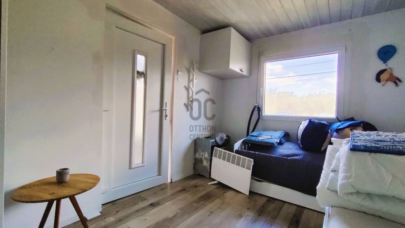 A Balaton-felvidék egyik nyugodt, természetközeli települése Balatonszepezd, ahol a vízpart közelsége és a környező dombok, erdők egyaránt meghatározzák a mindennapok hangulatát. A település ideális választás azoknak, akik a Balaton elérhetőségét szeretnék ötvözni egy csendesebb, visszafogottabb környezettel.Az ingatlan egy erdő alatti, forgalomtól mentes zsákutcában helyezkedik el, mindössze 500 méterre a Balatontól. A 466 m²-es, gondozott telken két nagy tölgyfa és néhány gyümölcsfa ad árnyékot és kellemes kertélményt. A telek egy pontjáról a Balaton víztükre is megcsillan.A telken két elkülönülő felépítmény található, melyeket egy cserépfedéssel ellátott, mintegy 10 m²-es fedett terasz kapcsol össze. Ez a köztes tér valódi találkozási pont.Az 1980-as években téglából épült, 12,5 m²-es kis ház egy 10 m²-es, a közelmúltban felújított szobát foglal magába, amely letisztult, világos térként szolgál pihenésre. Hozzá külön bejárattal egy 2,5 m²-es fürdőszoba csatlakozik. A másik épület egy összesen 21,5 m²-es faház, amelybe belépve egy 7,7 m²-es nappaliba érkezünk, innen nyílik a 9,5 m²-es lakószoba – egyszerű, de barátságos elrendezéssel. Külső megközelítéssel érhető el az ugyancsak könnyűszerkezetes, 3,3 m²-es főzőhelyiség, valamint az 1 m²-es toalett, így a funkciók jól elkülönülnek, mégis egységet alkotnak.A műszaki háttér a nyaraló jelleghez igazodik: vezetékes víz és villany rendelkezésre áll, a szennyvíz derítőbe ürül, a fűtést elektromos fűtőtestek biztosíthatják. Mindkét épület cseréptetővel fedett, ami időtálló és a környezetbe illeszkedő megjelenést ad. A teraszon túl egy ponyvasátorral védett rész is kialakításra került, amely további lehetőséget kínál a szabadtéri tartózkodásra.Ez az ingatlan ideális választás lehet mindazok számára, akik a Balaton közelségét keresik, mégis értékelik a csendes, visszahúzódó környezetet. Kiváló lehet természetkedvelőknek, akik számára a túrázás és az erdei séták a mindennapok részei, de szálláskiadásban gondolkodók vagy egy egyszerű balatoni nyaralót keresők is megtalálhatják benne a lehetőséget.Az ingatlan kedvezményes hitellel nem vásárolható meg.Ha szeretné személyesen is megtapasztalni ezt a nyugodt, természetközeli hangulatot, hívjon bizalommal, és tekintse meg személyesen is.Az adatok kizárólag a megbízóink által rendelkezésünkre bocsátott információkon alapulnak. Fentiekre tekintettel az adatok teljességéért, helyességéért és aktualitásáért nem vállalunk felelősséget. Az árváltozás, adatmódosítás és közbeni értékesítés jogát fenntartjuk, mindezekért jogi felelősséget nem áll módunkban vállalni.