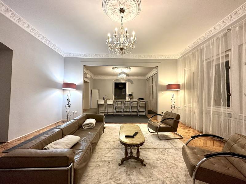 Budapest VI. kerületének egyik legpatinásabb részén, Belső-Terézvárosban, a Zichy Jenő utcában, a Szent István-bazilika és az Operaház közvetlen közelében kínálunk megvételre egy 175 m²-es, 5 szobás, 3 fürdőszobás, 3. emeleti, kiváló állapotú társasházi lakást, amely tökéletesen ötvözi a klasszikus polgári eleganciát a modern komforttal.Az ingatlan egyik legfőbb értéke a 3 métert meghaladó belmagasság, amely rendkívül tágas, világos tereket eredményez. A lakás ízlésesen berendezett, elegáns bútorokkal, amelyek harmonikusan illeszkednek a nagypolgári hangulathoz.Összesen 5 szoba és 3 fürdőszoba található, így akár nagyobb család számára, akár befektetési célra (pl. több lakrészes hasznosításra) is kiváló lehetőséget kínál.A lakás központi része egy impozáns, 63 m²-es nappali-konyha együttes, amely egy légtérben helyezkedik el, így ideális helyszínt biztosít a mindennapi élethez és a vendéglátáshoz. A nappaliból, illetve a konyha felől két nagyméretű hálószoba nyílik, mindkettő saját fürdőszobával, ami kiemelkedő komfortot nyújt. Három szoba utcai nézetű, így a lakás világos és élhető terekkel rendelkezik.Körülbelül 10 évvel ezelőtt teljes felújításon esett át, azóta folyamatosan karbantartott, így jelenlegi állapotában is kiváló.Az épület külső homlokzata felújított, a belső állapota jó, rendezett. 1/1 tulajdon, per és tehermentes, azonnal költözhető !Belső-Terézváros Budapest egyik legpezsgőbb és legértékállóbb városrésze, ahol a történelmi hangulat és a modern városi élet tökéletesen találkozik. A környéken számtalan étterem, kávézó, kulturális intézmény és szolgáltatás található, miközben a belváros minden fontos pontja gyalogosan elérhető. Kiváló közlekedés, elegáns környezet és magas presztízs jellemzi a lokációt.Ez az ingatlan ideális választás mindazok számára, akik egy nagyméretű, elegáns, kiváló elhelyezkedésű polgári lakást keresnek Budapest szívében.Igény esetén bankfüggetlen hitelügyintézéssel, teljes körű CSOK Plusz és Otthon Start Program ügyintézéssel állunk rendelkezésére. Bővebb információért és a megtekintéssel kapcsolatban hívjon bizalommal!