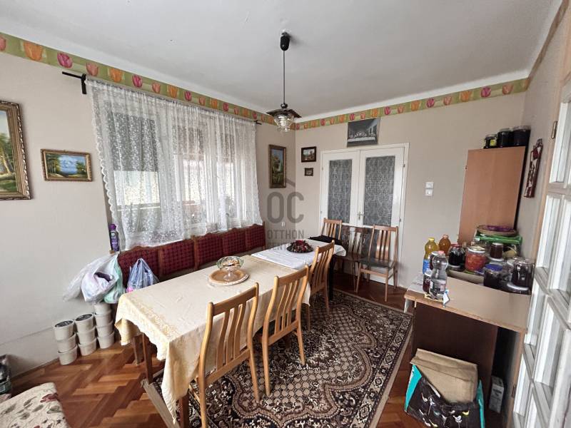 Dömsödön jó állapotban lévő 146 nm-es családi ház 1141 nm kerttel eladóHÁZ:- 1985 körül épült, masszív betonból a szuterén szinten, belülről +10 cm tégla fal- földszinti része szürke 30-as szilikát téglából épült- betonfödém- tetőtérben, beton koszorú és tégla falazat- cserép tetőfedés- 2 GENERÁCIÓSSÁ ALAKÍTHATÓ - átlagos állapotú, igényeknek megfelelően felújítandóFöldszint- 91 nm lakótér, földszintes, nappali + 2 szoba, konyha és egy nagy ebédlő , fürdőszoba + 25 nm fedett, beépített terasz sok ablakkal- fa ablakok, redőnnyel- összközműves- konyhabútor, gépesítve- a villanyvezetékek az eredeti 1985-ben épült szabványnak megfelelőFűtés- vegyes kazán és gáz kazán, radiátoros hőleadókkal- 2 nagy cserépkályha- meleg víz ellátás villanybojlerrőlSzuterén:- 4 részre van tagolva-50 nm-es tároló rész- 5 nm kazánház-23 nm garázs- 7 nm tűzifa tárolóTetőtér:- beépíthető 70 nm-es hasznos alapterülettelTELEK:- 1141 nm telek- GARÁZS 1 autónak a szuterén szintben, jelenleg inkább tárolásra használják- tároló épület a kertben kb. 50 nm- autónak beállóELHELYEZKEDÉS:- az 51-es úton lévő Omv kúthoz közel- busz megálló, iskola, központ 15 perc alatt elérhető gyalogosan- Budapest 50 km, autóval 1 óraTovábbi információért kérem keressen!