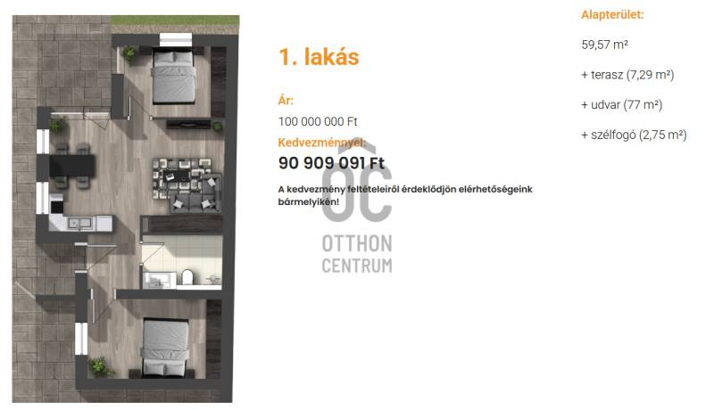 A megjelölt vételár, szerződéskor teljes vételár megfizetése esetén érvényes, egyéb fizetési ütemezés esetén az ár eltérő, magasabb, erről kérem tájékozódjon, bővebb felvilágosítást adok,Ez az ingatlan a földszinten helyezkedik el, terasszal, saját kertkapcsolattal.Projekt bemutatásaDebrecen belvárosában, 621 m2 - es telken 4 lakásos társasház + 1 db rendelő épül. Várható átadása : 2027 tavasza.Belvárosi környezetben ideális választás saját otthonnak, illetve befektetési célból is.Parkolás : az udvarban 5 db felszini parkoló kerül kialakításra.Műszaki jellemzői :- A + energetikai besorolású- protherm 30 NF tégla falazat- 15 cm homlokzati szigetelés- 3 rtg műanyag nyílászárók- hőszivattyús fűtés ( levegő - víz )- padlófűtés- 1 db 3,5 kw - os klíma lakásonként- kereteken belül választható belső műszaki tartalom- Stb ....A beruházó, illetve kivitelező cég, megbízható, rengeteg referenciával rendelkezik.Ha felkeltettem az érdeklődését, kérem hívjon bizalommal.