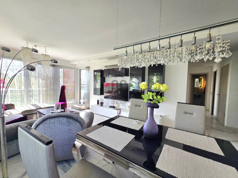 SAJÁT VÍZPART + MEDENCE + PANORÁMÁS TERASZ – PRÉMIUM LAKÁS SIÓFOK EZÜSTPARTJÁNA Balaton közvetlen vízpartján elérhető lakások száma rendkívül korlátozott – különösen akkor, ha saját partszakasszal és panorámás terasszal rendelkeznek.Most egy ilyen ritka lehetőség vált elérhetővé Siófok Ezüstpartjának egyik legnívósabb utcájában: egy modern, panorámás lakás egy exkluzív, saját stranddal rendelkező vízparti lakóparkban.Az ilyen adottságú ingatlanok általában évekig nem kerülnek piacra. Az ingatlan egy exkluzív, zárt lakópark része, ahol a tulajdonosok számára saját balatoni partszakasz, privát strand és medence biztosítja a páratlan életminőséget.Az ingatlan legfőbb paraméterei:Balatoni panorámás luxuslakás, amely egy modern, 2019-ben épült, liftes társasház második emeletén található.A 75m²-es lakótérhez egy 17 m²-es panorámás terasz kapcsolódik, amelyről a Balaton látványa minden napszakban különleges élményt nyújt.Az ingatlan egy exkluzív, zárt lakópark része, ahol a tulajdonosok számára saját balatoni partszakasz, privát strand és medence biztosítja a páratlan életminőséget.Elrendezés:tágas amerikai konyhás nappali2 külön nyíló hálószobaelegáns fürdőszobakülön wc kézmosóvalpraktikus tárolónagyméretű panorámás teraszA lakás világos, nyugati tájolású, modern és időtálló műszaki megoldásokkal felszerelt.Modern technológia és prémium kivitelezés:A lakás minden részletében a korszerű, energiatakarékos és kényelmes életvitelt szolgálja.egyedi hőszivattyús hűtő-fűtő rendszerH-tarifás villanymérőháromrétegű hőszigetelt nyílászárókelektromos alumínium redőnyökszúnyoghálóküvegkorlátos panorámateraszprémium árnyékolástechnikaAz épület külső és belső kialakítása magas minőséget és elegáns megjelenést képvisel, amely tökéletesen illeszkedik a Balaton exkluzív vízparti környezetéhez.A lakók kényelmét szolgálja:saját balatoni partszakaszzárt privát strandmedenceparkosított zöldterületekpihenő- és sportolási lehetőségekmodern játszótérA lakópark elektromos kapukkal és biztonsági rendszerrel védett, így a nyugalom és a diszkrét környezet garantált.Kiváló elhelyezkedésAz ingatlan Siófok egyik legkeresettebb részén, az Ezüstparton található.A lakáshoz tartozik, amely a VÉTELÁR RÉSZÉT képezi- ritka lehetőség a Balaton partján:privát felszíni parkolóhelyönálló tárolóteljes berendezés, gépiesített konyhabútorA közvetlen vízparti, panorámás lakások száma rendkívül korlátozott a Balatonon, ezért az ilyen ingatlanok nemcsak különleges életminőséget, hanem hosszú távon is értékálló befektetést jelentenek.Egy hely, ahol a Balaton nem csak közel van – hanem az élet része.#luxusingatlan #lakópark #siófok #Balaton #eladóingatlan #exkluzív#saját vízpart# kiváló elhelyezkedés#medence#panoráma#