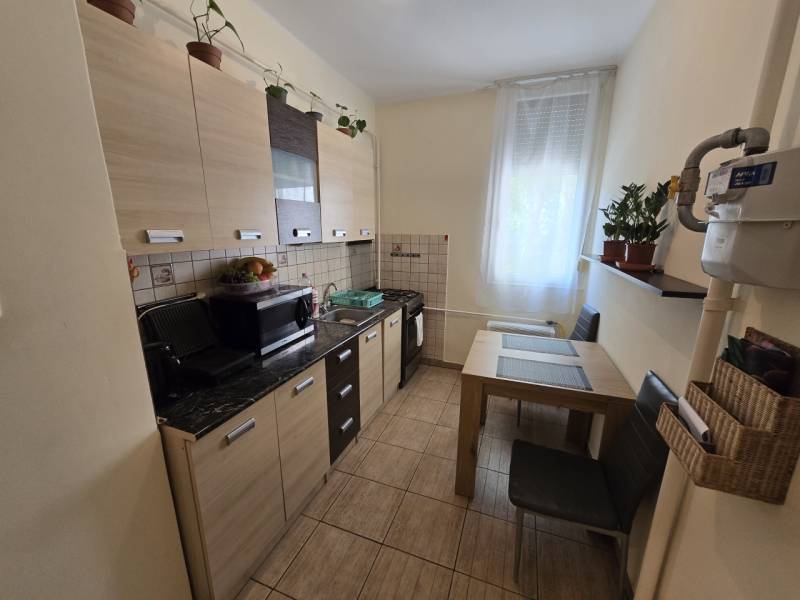 Baján, a Szent János városrész közkedvelt részén, kiváló elhelyezkedéssel kínálunk megvételre egy azonnal költözhető, első emeleti lakást.Az 53 m²-es ingatlan egy rendezett, tiszta lépcsőházzal rendelkező, öt szintes társasház első emeletén helyezkedik el, nyugodt, parkosított környezetben. A társasház körül kényelmes parkolási lehetőség biztosított, a lakáshoz pedig egy saját használatú kerékpártároló is tartozik.A lakás jelenlegi kialakítása praktikus és jól élhető: előszoba, közlekedő, külön nyíló konyha, fürdőszoba, külön WC, egy tágas, erkélykapcsolatos nappali, valamint egy külön szoba áll rendelkezésre. Az ingatlan belső állapota kifogástalan, teljes mértékben kulcsrakész, így új tulajdonosa számára azonnal költözhető.A műszaki állapot is megnyugtató:2018-ban a villamoshálózat teljes felújításon esett át, az összes nyílászáró korszerű műanyag kivitelű. A fűtésről egyedi gázkonvektorok gondoskodnak, melyet egy hűtő-fűtő klíma egészít ki, biztosítva az egész éves komfortérzetet.Az ingatlan egyik kiemelkedő előnye, hogy a vételár a bútorzat jelentős részét (kb. 80%) is tartalmazza, így akár azonnal hasznosítható, külön ráfordítás nélkül.Elhelyezkedése kiváló: üzletek, intézmények, szolgáltatások mindössze 5–10 perc sétával elérhetők, így a mindennapi élet kényelmesen és gyorsan szervezhető.Befektetők számára különösen vonzó lehetőség, hogy a jelenlegi bérlő – megegyezés esetén – szívesen tovább bérelné az ingatlant, így azonnali, kiszámítható hozam érhető el.Irányár: 28,5 millió FtEz a lakás ideális választás lehet mind saját otthonnak, mind biztos megtérülést kereső befektetők számára.