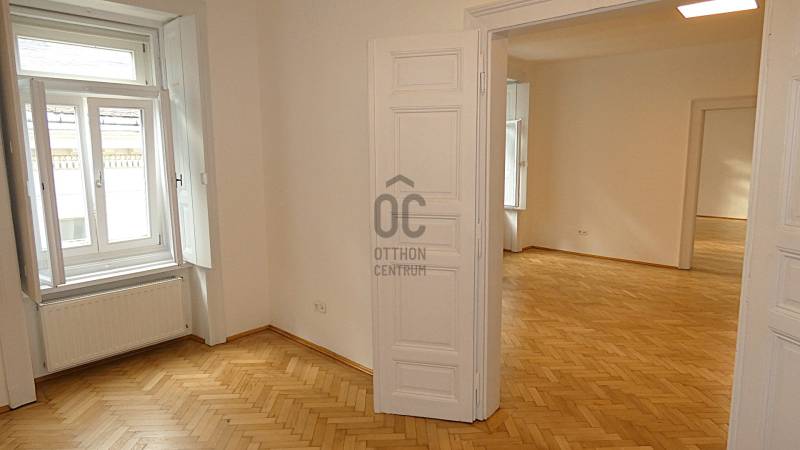 V. KER. CSENDES MELLÉKUTCA, SZÉP HÁZ, 4.e.-i JÓ ÁLLAPOTÚ 138 m2 LAKÁSV. Ker. LIPÓTVÁROS körzetében, CSENDES MELLÉKUTCÁBAN (átmenőforgalomtól mentes), kívül-belül SZÉP, 1930-as években épült LIFTES HÁZ 4. EMELETÉN kínálunk eladásra, egy 138 m2-es, 4 SZOBÁS, VILÁGOS, NY-i TÁJOLÁSÚ, KLIMATIZÁLT, KIÉPÍTETT SZÁMÍTÓGÉPES HÁLÓZATTAL RENDELKEZŐ, FRISSEN FELCSISZOLT PARKETTÁS, NAGYPOLGÁRI LAKÁST.Az alaprajzon megjelölt hall, és a 14,4 m2-es szoba egybe van nyitva, de ez egy válaszfallal visszaépíthető. AZ INGATLANT JELENLEG EGY NAGY MÚLTÚ, ÁLLAMI CÉG BÉRLI 700eFt/hó+Áfa ÖSSZEGÉRT, AKIK MARADNÁNAK HOSSZÚ TÁVRA.Külső nyílászárók: FELÚJÍTOTT TRIPLA ÜVEGEZÉSŰ, HŐSZIGETELT FA, Belső nyílászárók: EREDETI FELÚJÍTOTT FA Fűtés: gáz cirkó (ÚJ A KAZÁN), Belmagasság: 3,5 m. Közös költség: 30eFt/hó, mely tartalmazza a közös villany, kukaszállítás, lift, felújítási alap, valamint a közös képviselő költségeit is, + 11eFt/hó a felújítási alap. Vízóra van.Közlekedés: busz, metró, villamos néhány perc sétatávolságraTISZTELT ÉRDEKLŐDŐ!TÖBB MINT 20 ÉVE FOGLALKOZOM INGATLANOK ÉRTÉKESÍTÉSÉVEL MAGYARORSZÁG PIACVEZETŐ INGATLANKÖZVETÍTŐ HÁLÓZATÁNÁL, AZ OTTHON CENTRUMNÁL. AMENNYIBEN SZÁNDÉKÁBAN ÁLL INGATLANT ELADNI - A LEGRÖVIDEBB IDŐN BELÜL, GARANTÁLT JOGI, ÉS BANKI HÁTTÉRREL - KERESSEN BIZALOMMAL, HOGY EGY HELYSZÍNI FELMÉRÉST KÖVETŐ INGYENES ÉRTÉKMEGÁLLAPÍTÁS UTÁN, EGYÜTT TUDJUNK MŰKÖDNI AZ ÖN INGATLANÁNAK AZ ELADÁSÁBAN IS!