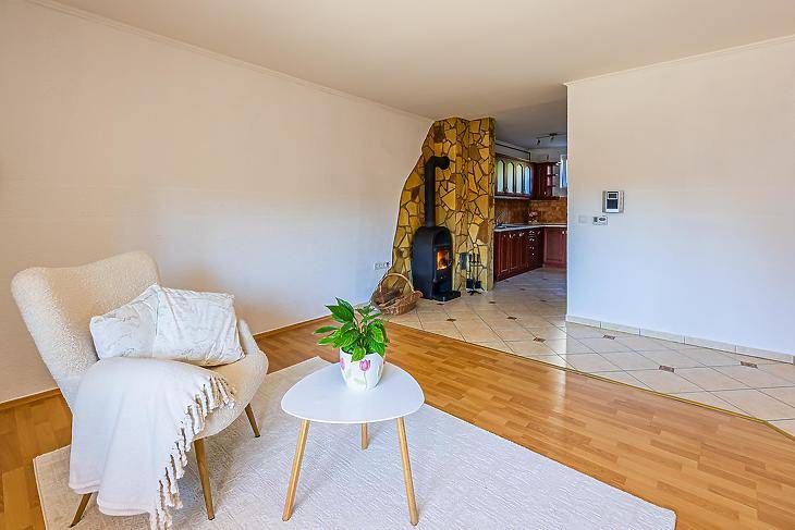 Dunakeszi központi részén, kis kertel, autóbeállóval rendelkező középső sorházi lakás eladó.A fenntartási költsége nagyon kedvező, a ház szigetelt, a fűtést kombi cirkó szolgálgattatja radiátoros hőleadással, és a nappaliban van egy hangulat és kiegészítő fűtésnek szolgáló fa tüzelésű kandalló.Belső két szinten, amerikai konyhás nappali saját kamrával, 2 db fürdőszoba és 2 db hálószoba van. A nagyobb szobából van kijárat a 9 nm-es nyugati fekvésű erkélyre.Minden közmű bent van a házban, és saját fő mérőórával rendelkezik.2008-ban épült, állapota jó a korának megfelelő, burkolatok, szaniterek, nyílászárók, konyhabútor jó állapotú.A lakás előtti kis kert térkővel lett burkolva.Irodánk díjmentesen, és bank függetlenül megtalálja Önnek a legjobb hitel megoldást amennyiben erre szükség lenne.Érdeklődni, telefonon, vagy üzenet formályában lehetséges.