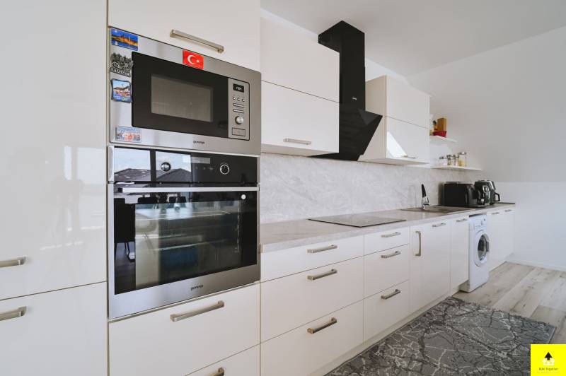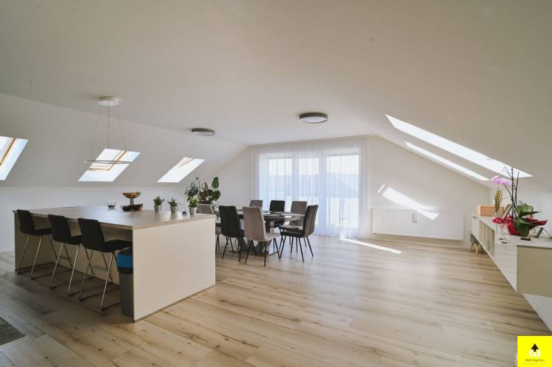 2023-ban átadott, igényes kivitelezésű, új építésű, 16 lakásos társasházban kínálunk megvételre egy igazán különleges hangulatú, tágas és rendkívül világos tetőtéri lakást Bükön, a Penny közelében.A 2. emeleten található, bruttó 158 m²-es, egy szinten elhelyezkedő otthon körben három erkéllyel rendelkezik, így minden napszakban élvezheted a természetes fényt és a panorámás kilátást. Kelet–dél–nyugati tájolása garantálja az egész napos világosságot, a nappaliból nyíló, 18 m²-es erkély pedig tökéletes helyszín a reggeli kávéhoz vagy az esti pihenéshez.Az ingatlan nemcsak látványos, hanem gazdaságos is: A++ energetikai besorolásának köszönhetően fenntartása rendkívül kedvező. Részben bútorozott, biztonsági bejárati ajtóval, klímával, valamint modern, applikációval vezérelhető automata redőnyrendszerrel felszerelt.Elrendezés:• hatalmas, egy légterű nappali–étkező–konyha (igény szerint további hálószoba kialakítható) • 2 külön nyíló hálószoba, mindkettő saját fürdőszobával A lakáshoz igény esetén nagyméretű garázs is vásárolható.Ez az ingatlan tökéletes választás azok számára, akik nemcsak egy lakást, hanem egy exkluzív, napfényes és jól alakítható otthont keresnek nyugodt környezetben.