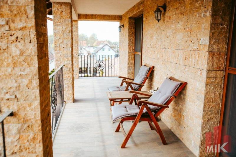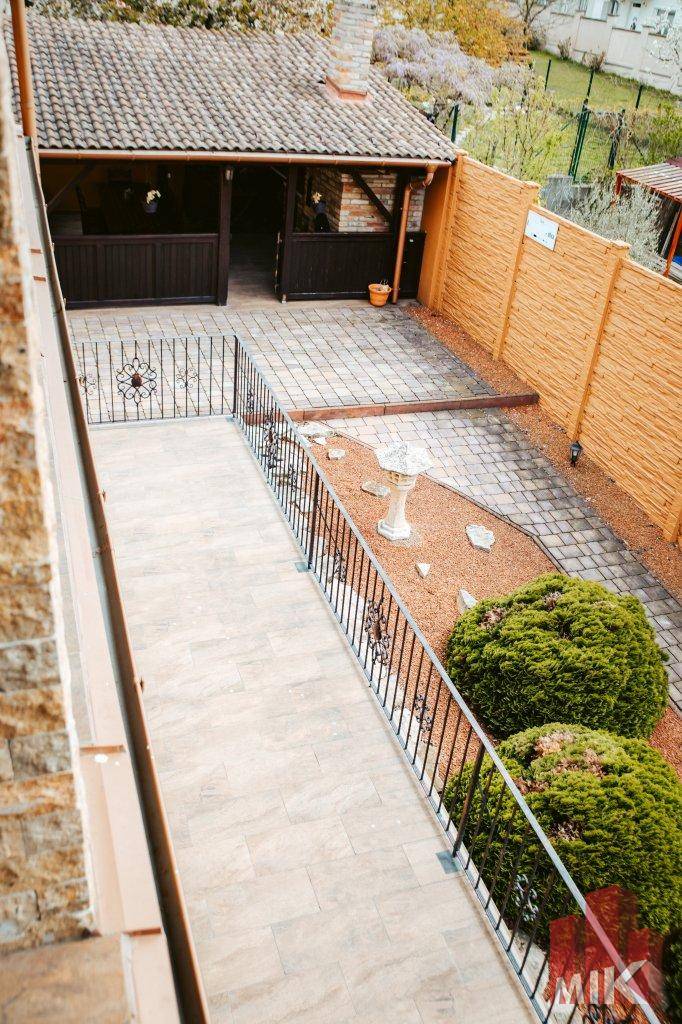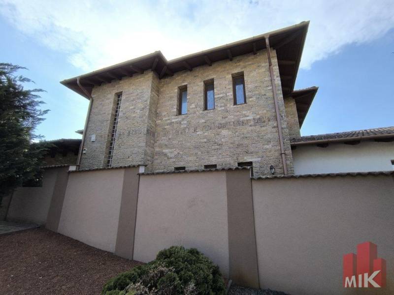 Csendes utca gyér forgalommal, körbejárható háromszintes, mediterrán stílusú ház saját kerttel, kétállásos garázzsal, wellness-részleggel, borospincével, kemencével, tágas terekkel!Győr északi részén, csendes környéken, az európai szintű infrastruktúrával ellátott Szitásdombon egy olyan elegáns, nagypolgári élettér került kialakításra, amely a klasszikus családi ház jelleget kibővítve a családi, baráti és társasági eseményeknek is teret ad, az üzleti partnerek felé reprezentál, akár tárgyalásoknak is nyugodt helyet biztosít, miközben egyben marasztal is, megteremtve az ideális otthon-munkahely együttes harmóniáját!1.725 m2-es, enyhén lejtős saroktelek, a főépület 330 m2, a teraszok összesen 240 m2, pince és konditerem 105 m2, garázs 36 m2, külső nyári konyha és borospince 24+23 m2, külső stúdió-lakrész további 15 m2.A teljes beépített hasznos alapterület 776 m2, ami nettó 528 m2.A főépület belső, kétszintes lakótere önállóan 330 m2. Az első szinten, egy légtérben található a nagy nappali és konyha az étkezővel, teraszkapcsolattal, valamint innen nyílik a dolgozószoba, szemben vele egy tágas fürdőszoba. Tovább lépve csekély szintkülönbséggel érhető el a wellness-részleg, ugyancsak teraszkapcsolattal.Az emeleten van három szoba, fürdőszoba, beépített szekrények. Minden szoba D-DK-i tájolású, és minden szobából kiléphetünk a 30 m2-es fedett erkélyre.- Extrák: belsőépítész által tervezett enteriőr, belső, feszített víztükrű, fűthető medence, nagy teljesítményű párátlanító, süllyesztett jakuzzi, szauna, külön mosókonyha, vendégmosdó, minden helyiség légkondicionált. Az alsó szinten kialakított, teljesen felszerelt konditerem.- Központi padló-, és falfűtés kondenzációs gázkazánnal, épített, stílusos cserépkályha, vákuumcsöves napkollektor, többzónás riasztó-, és kamerarendszer.- Parkosított, térkövezett, kertész által rendszeresen gondozott telek. Automata locsolórendszer, átgondolt esővíz-elvezetés.- Külső, fedett, faépítésű 10 fős vendégváró, épített kerti sütő - kemence.- Külső, hátsó, teraszos nyári konyha és hangulatos, ugyancsak 10 fős borospince.- Külső kis lakrész, teljesen felszerelt stúdió a hátsó kapunál karbantartónak, akárkinek alkalmi szállásként.Az ingatlan jelenleg cégtulajdonban van, így a meghirdetett vételár áfás ár, további egyeztetést igényel. A teljes cég megvásárlása esetén az átvétel áfa-mentes, az ár módosul!Ha egy modern és tágas, világos, szép otthont szeretne, melyet öröm belakni, öröm a társasági életének helyet adni, és amit az idetelepített irodája okán munka miatt a hétköznapokban sem, a wellness lehetőségek okán még a hétvégén sem szükséges elhagyni, akkor ez az a ház, ami mindezeknek megfelel!Érdeklődése esetén állunk rendelkezésére! A tulajdonosok kérését tiszteletben tartva az ingatlan személyes megtekintése előtt szükséges egyeztetnünk, ezt követően tudunk bővebb felvilágosítást adni, további képeket mutatni.MIK azonosító: 4026789