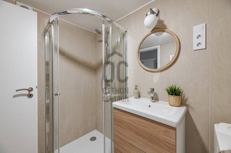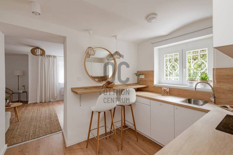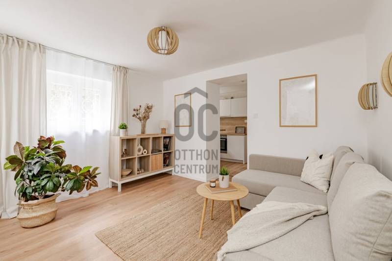 II.kerületben a Hűvösvölgy Bevásárlóközpont közelében, csendes zsákutcában, egy szép zöld kert közepén álló 4 lakásos villaépületben, földszint-félszuterén magasságban, világos, napos, 38 m2-es, 2 szobás, műszakilag és esztétikailag teljesen felújított lakás, teljes bútorzattal, gépesített konyhával, eladóvá vált!A kert szintemelkedése miatt a lakás egy része félszuterén. A nappali és a szoba déli, a konyha nyugati fekvésésű és ezek a helyiségek földszint magasságban vannak. A fürdőszoba már szuterén, de ventillátoros pára és szagelszívóval van ellátva.A lakásról:*világos, napos fekvésű, ablakos, gépesített konyha, étkezőpulttal*tágas nappali, amiből nyílik egy hálószoba, *műanyag nyílászárók, ráccsal felszerelve*elektromos panel fűtés, de ajánlott klímára váltani * zuhanyzós fürdőszoba, modern meleg vizes bojler, törölközőszárító, ventillátoros elszívó, mosógép*beépített szekrények, teljes bútorzat*2024-ben műszakilag és esztétikailag is felújítva*a lakás berendezve, teljes bútorzattal van ellátvaA villaépület:*4 lakás*gondozott társasházi kert*15.000,- forint közös költség, amiben benne van a korlátlan vizfogyasztás200 méteren belül buszmegálló, LIDL, gyógyszertár, Hűvösvölgy Szolgáltatóház és Bevásárlóközpont, kávézók, cukrázdák, éttermek. A közelben óvoda, iskola is van. Ami a hétköznapi élet kényelméhez szükséges, minden könnyen elérhető távolságban van.Amennyiben felkeltette az érdeklődését ez a kiváló lehetőség, további információkért kérem keressen bizalommal!