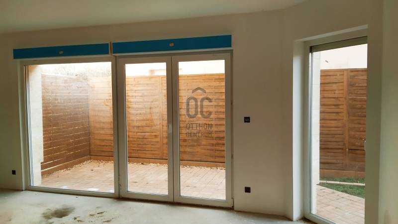 Szuper elhelyezkedésű új építésű, két lakásos társasház földszinti 64 m2-es lakása lehet az Öné!Saját kertrésszel, terasszal.Budaörs szívében, mégis csendes, nyugodt környezetben élhet.Minden karnyújtásnyira. Buszmegálló és iskola, óvoda, bölcsőde, orvosi rendelő, bevásárlási lehetőségek..A lakás:- nappali és 2 hálószobás , 64 m2-es- nyugati tájolású- tégla falazatú, 10 cm grafit szigeteléssel- a födém PTH gerendás , monolit vasbeton- a tetőszigetelés 20 cm- kovácsoltvas korlátok- fehér színű, három rétegű nyílászárók redőnnyel, szúnyoghálóval felszereltek- a nappaliban elektromos redőny- a szobák burkolata laminált parketta, a többi helyiség járólapos.- a szobák külön nyílnak- fűtéséről kondenzációs kazán gondoskodik- klíma kiépítve- riasztórendszer előkészítve- a lakás biztonsági bejárati ajtóval felszerelt- az ingatlanhoz tartozik egy szeparált kertrész- gyepszőnyeg automata öntözőrendszerrel az ár részét képezi- parkolás a ház előtti parkolóban lehetséges- az ár kulcsrakész ár, konyhabútor és lámpatestek nélkül.Megbízható, igényes, gyakorlott kivitelező. Referenciamunkái megtekinthetők!Ha barátságos, gazdaságosan fenntartható igazi Otthont keres, nem is kell tovább keresnie!Hívjon, megmutatom, segítek, hogy az Öné lehessen!