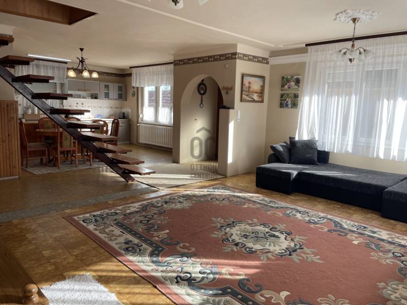 Eladásra kínálok egy ingatlant, mely:- akár vállalkozásnak, akár több generáció együttélésének is biztosíthat teret- 1989-es építés, beton alap, falazat szilikát ( az előírt szellőztetése beépítés előtt megtörtént)- hőszigetelt üvegezésű műanyag nyílászárók, redőnnyel- pár éve cserélt, fa biztonsági bejárati ajtó- központi fűtés radiátorokkal, kombi gáz kazánnal- víz, gáz, villany és csatorna közművek bekötve, mérőórák a helyszínen- klímával felszerelt- a földszinten hatalmas közösségi tér, mely egy légtérben van a konyha-étkezővel is- fényes, világos terek- tehermentes ingatlan, 30 napon belül költözhető- közepes méretű rendezett telek- cserép fedésű tető- épített sütögető rész, árnyékot adó fák- az udvaron található melléképület korábban élelmiszer üzletként funkcionált, mely vízzel, árammal ellátott, fűtött, lehet akár egy külön lakrész is a jövőben- garázs és fedett kocsibeálló is található az udvarban- az utcáról közvetlen behajtással rendelkező garázs- az épület alatt pince is található- lokációt tekintve aszfaltos út mellett, a város központjától kb 1,4 km-re helyezkedik el, közelben kisbolt hirdetésben szereplő információkat a tulajdonostól kaptam, azokért irodánk felelősséget nem vállal.Irodánkban bank-független pénzügyi szakértőnkkel tudnak hitelkonstrukciók között eligazodni, mely szolgáltatás ingyenes.Keressen bizalommal, nézzük meg együtt!