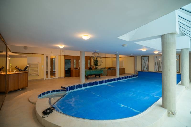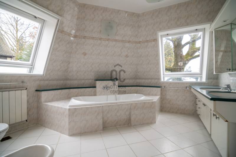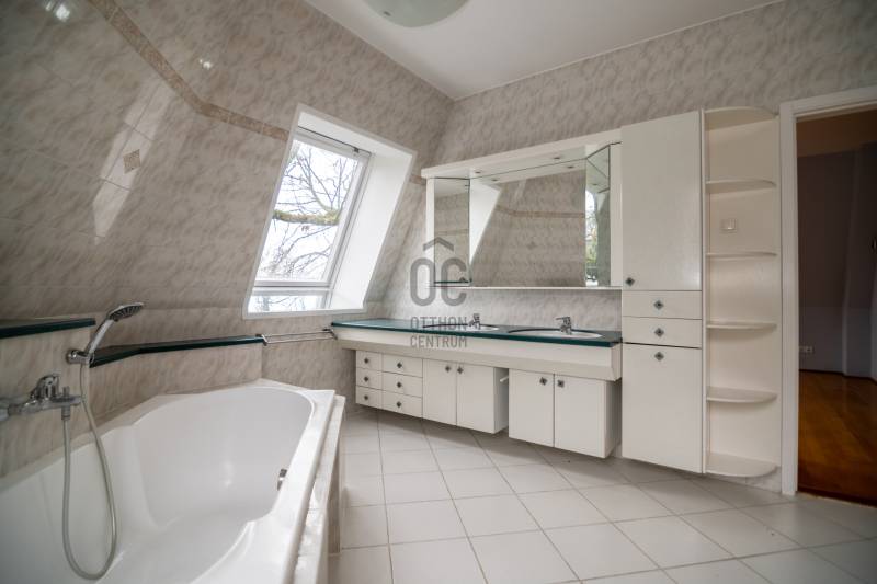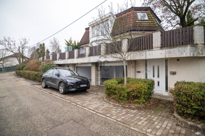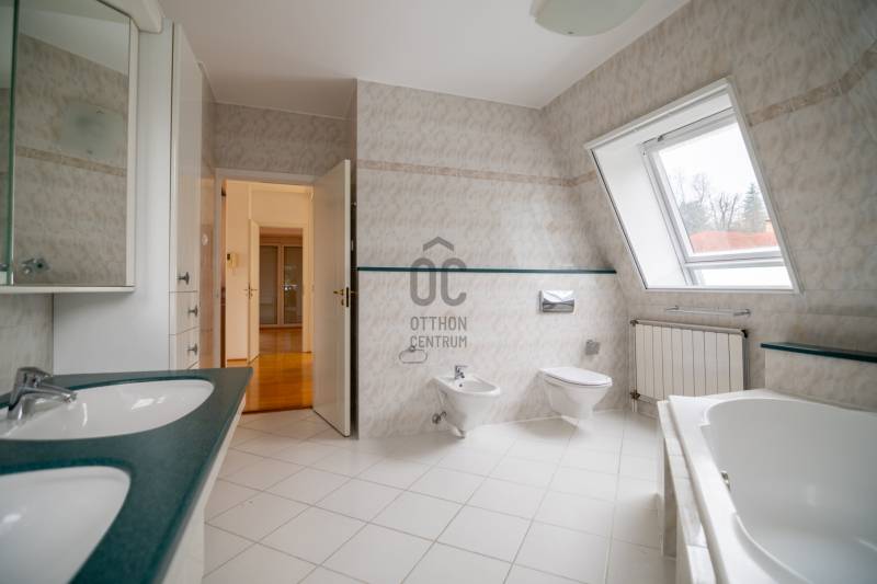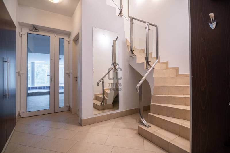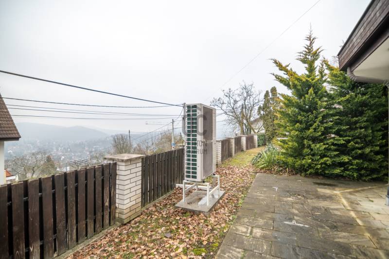 Panorámás villa zöldövezetben – Budapest közelébenEz a különleges adottságokkal rendelkező, háromszintes, nettó 292 m²-es villa tökéletes választás azok számára, akik nyugodt, természetközeli környezetben szeretnének élni, kompromisszumok nélkül.Főbb előnyök• Lenyűgöző, zavartalan panoráma a zöld hegyekre• Korszerű hőszivattyús rendszer, napelemmel – alacsony fenntartási költségek• Csendes, biztonságos, családbarát környezet• Kiváló elhelyezkedés – Budapest gyorsan elérhető• Két külön élettér kialakításának lehetőségeElrendezésFőbejárati szintA ház központi tere egy tágas, világos nappali hangulatos kandallóval, amely közvetlen kapcsolatban áll a terasszal és az étkezővel.Emellett egy modern, jól felszerelt konyha, egy gardróbos vendégszoba és egy fürdőszoba is helyet kapott ezen a szinten.Felső szintA felső szinten egy panorámás hálószoba és egy elegáns fürdőszoba található, továbbá egy külön konyha, amely ideálissá teszi a szintet akár önálló lakrészként is.Jelenleg 3 hálószoba került kialakításra, de igény szerint könnyedén visszaalakítható 4 szobássá.Alsó szint – wellness és garázsAz ingatlan egyik kiemelkedő része a saját wellness szint:• Fűtött beltéri medence• Szauna és jacuzzi• Párásító rendszer a komfortos levegőértEzen kívül kétállásos garázs, tárolóhelyiségek és a modern gépészet is itt kapott helyet.További extrák• Elektromos redőnyök és szúnyoghálók• Tágas, jól használható terasz• Kültéri parkolási lehetőség• Nemzetközi iskolák a közelbenÖsszegzés• 292 m² lakótér• Két különálló élettér lehetősége• Energiatakarékos, modern műszaki megoldások• Ritka, értékálló panoráma