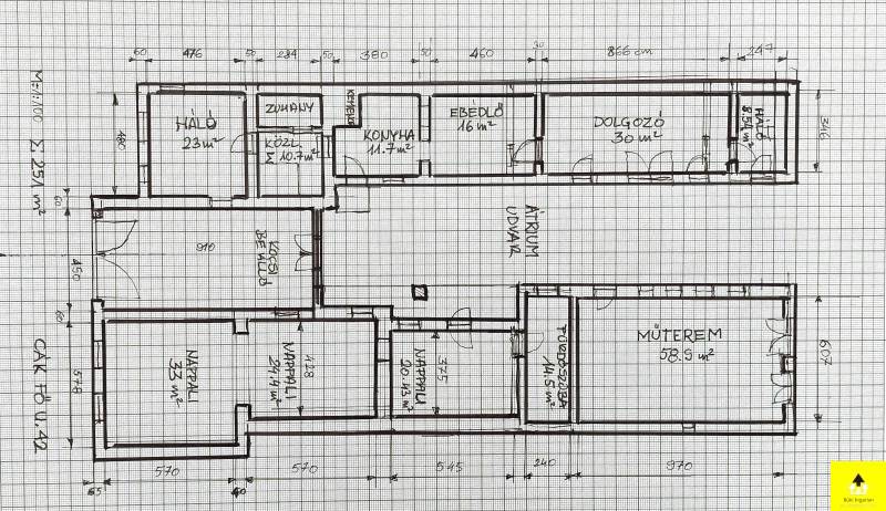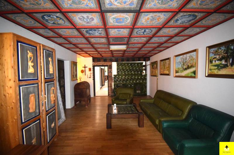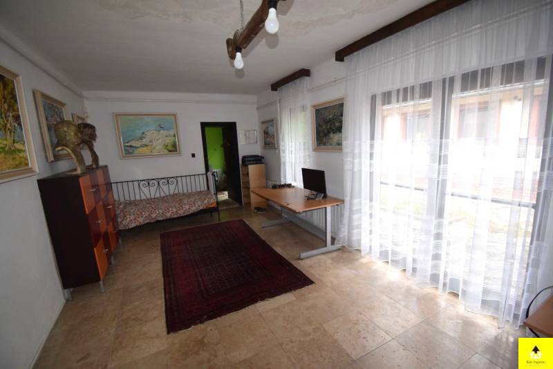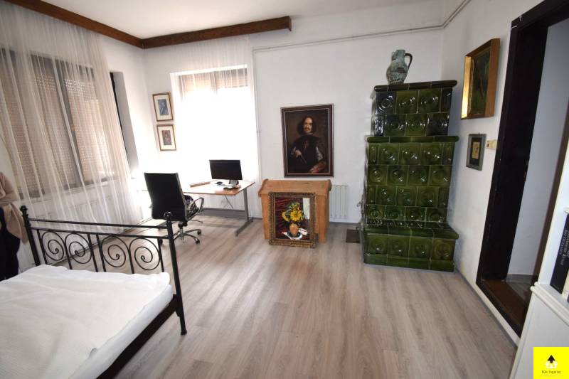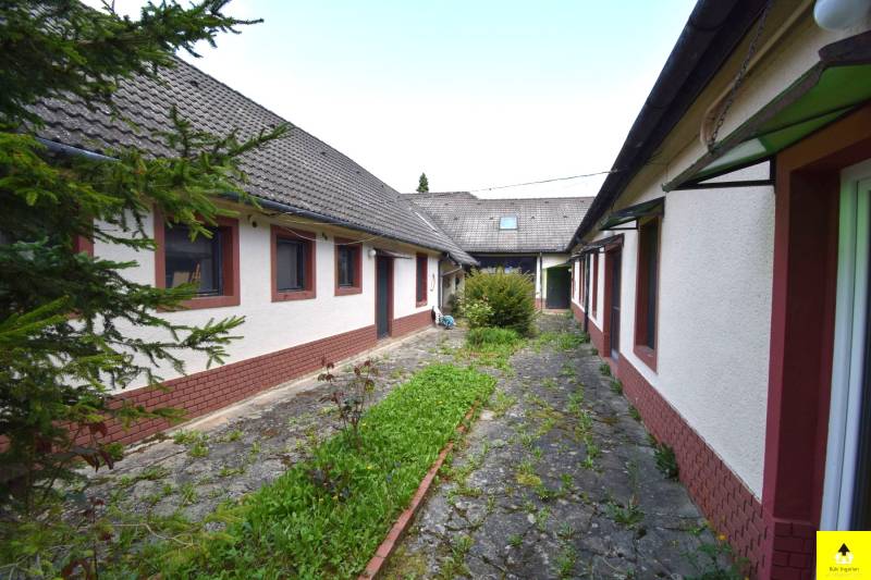 Eladó családi ház Cákon – Tágas, kétlakásos ingatlan műteremmel és egyedi jellemzőkkelEladó egy egyedülálló hangulatú családi ház Cák bájos településén, 250 m²-es alapterülettel, beépített tetőtérrel és különleges művészi részletekkel.A ház kiváló szerkezeti állapotban van, tetőszerkezete Bramac cseréppel fedett, ami időtálló védelmet biztosít. A tetőtér beépített, kivéve a műterem fölötti részt, ahol nyitott, látványos fedélszék emeli ki a belső tér esztétikumát és tágas érzetét. Az épület egy része alatt pince található, amely kiváló lehetőséget nyújt tárolásra vagy akár borospince kialakítására is.Az ingatlan Cákon található, a Kőszegi-hegység oldalában, gyönyörű természeti környezetben. A csendes, nyugodt falu tiszta levegője és békés hangulata ideális választás azok számára, akik nyugalomra vágynak, ugyanakkor fontos számukra Kőszeg és Szombathely közelsége.A ház két különálló, de harmonikusan kapcsolódó egységből áll, amelyek akár külön is használhatók:• A bal oldali lakótér egy tágas dolgozószobát, két hálószobát, egy konyhát, étkezőt, fürdőszobát és közlekedőt foglal magában.• A jobb oldali szárnyban egy 58 m²-es műterem, egy 57 m²-es nappali, egy hálószoba és egy fürdőszoba található. A műterem különösen ideális művészeknek vagy kreatív tevékenységhez. Az épület egyik igazi különlegessége a festett kazettás mennyezet, amely egyedi, művészi hangulatot áraszt.A két épületrészt egy hatalmas, zárt kapualj köti össze, amely nemcsak karakteres térkapcsolatot teremt, hanem több autó kényelmes és biztonságos parkolását is lehetővé teszi. A kapualj fölötti tetőtér szintén beépített, így további hasznos élettérként szolgál.A ház egy zárt, intim udvart ölel körbe, amely biztosítja a teljes nyugalmat és privát szférát. Két jó állapotú fatároló is rendelkezésre áll, amelyek praktikus megoldást nyújtanak a tárolásra.